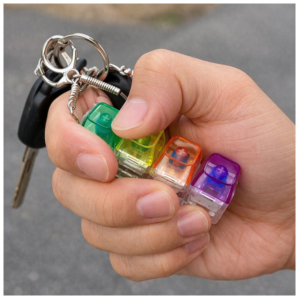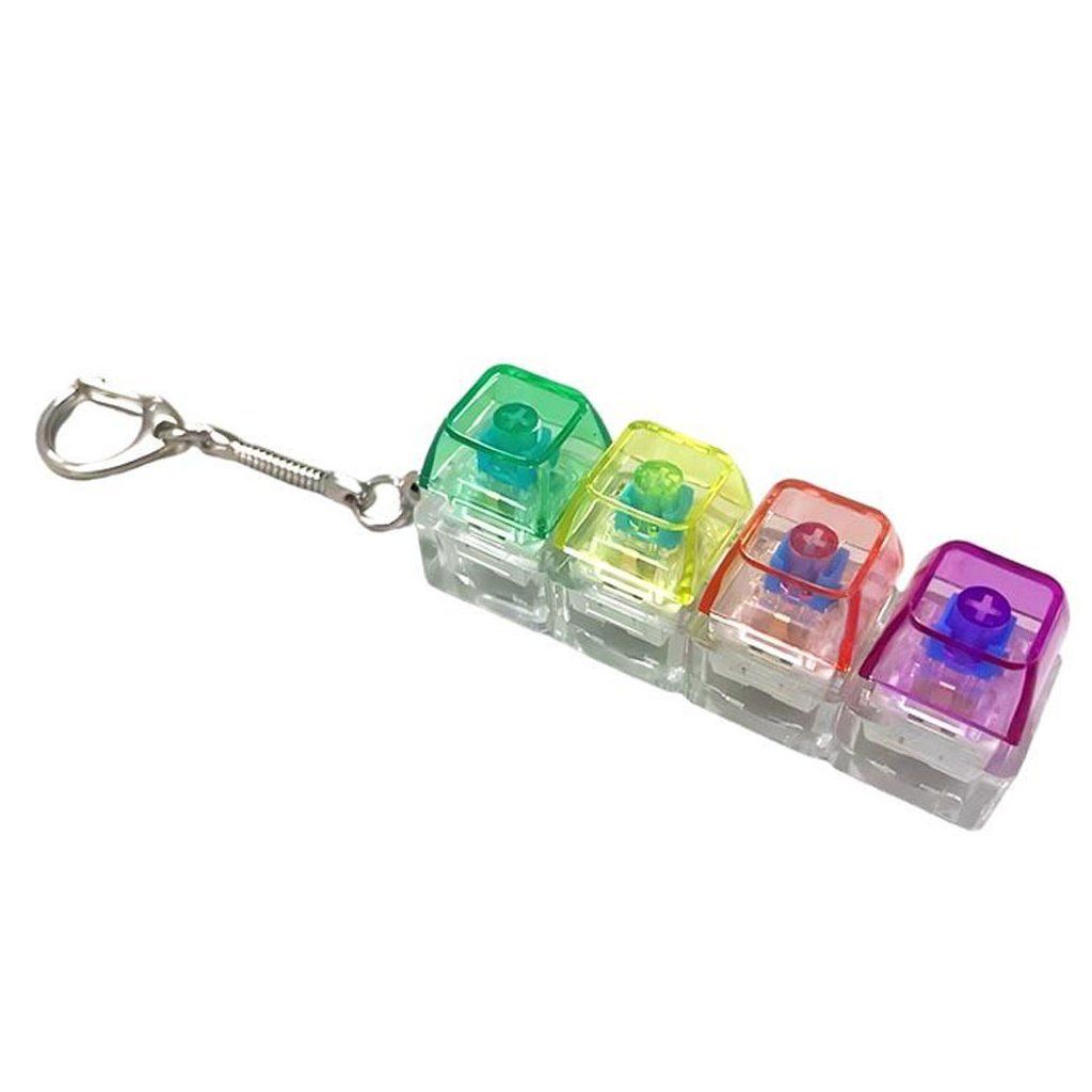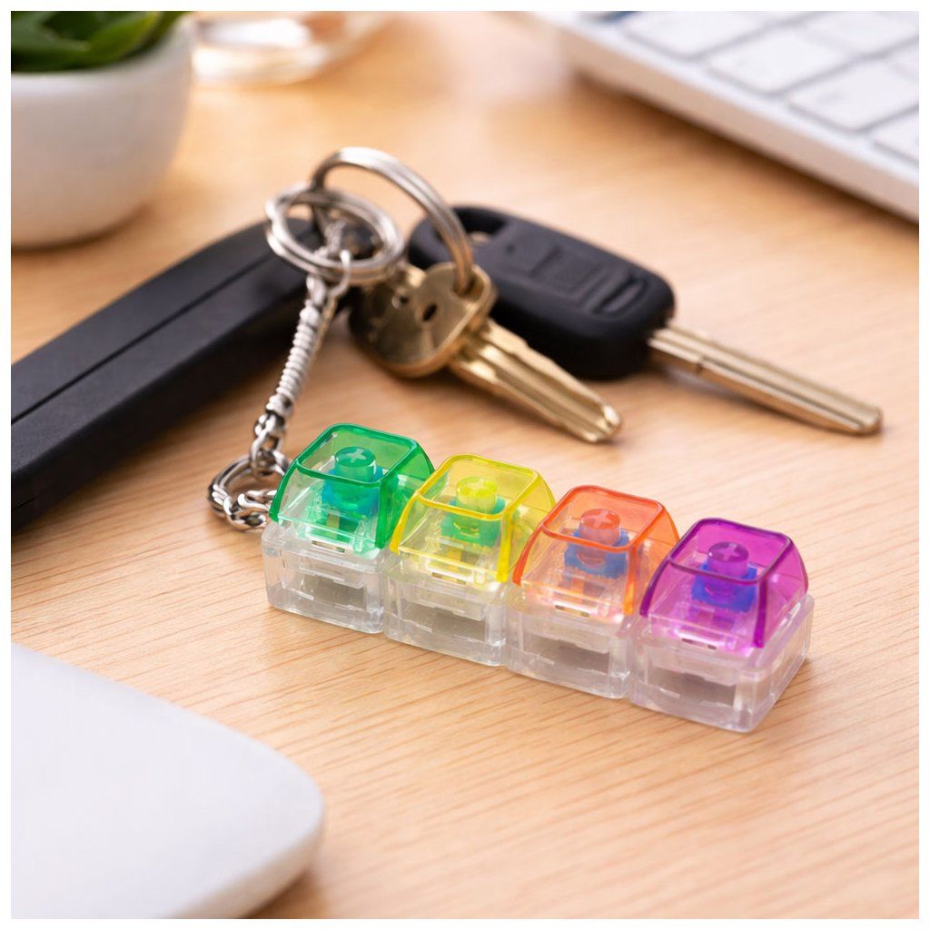 Antistresová hračka jako přívěsek na klíče se spínači jako má klávesnice. Slouží ke zmírnění stresu, úzkosti a pomáhá udržet soustředění klikáním na kláves. Skládá se ze čtyř průhledných mechanických spínačů s klávesami v různých barvách.