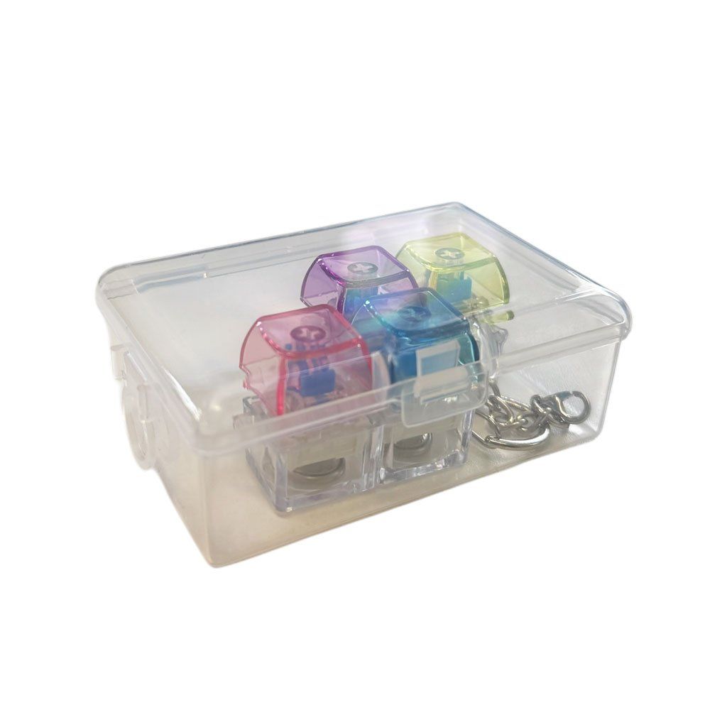Antistresová hračka jako přívěsek na klíče se spínači jako má klávesnice. Slouží ke zmírnění stresu, úzkosti a pomáhá udržet soustředění klikáním na kláves. Skládá se ze čtyř průhledných mechanických spínačů s klávesami v různých barvách, které při každém stisknutí svítí.