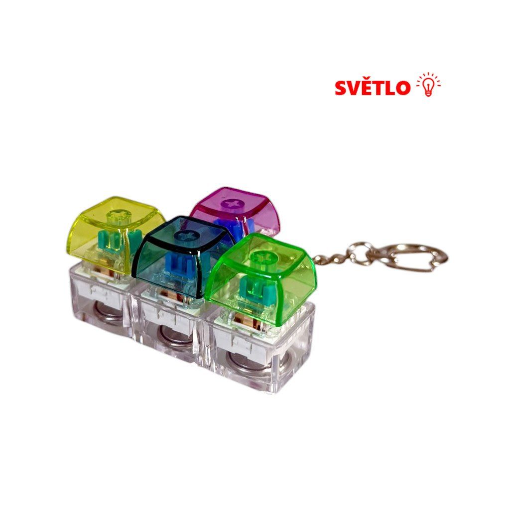 Antistresová hračka jako přívěsek na klíče se spínači jako má klávesnice. Slouží ke zmírnění stresu, úzkosti a pomáhá udržet soustředění klikáním na kláves. Skládá se ze čtyř průhledných mechanických spínačů s klávesami v různých barvách, které při každém stisknutí svítí.