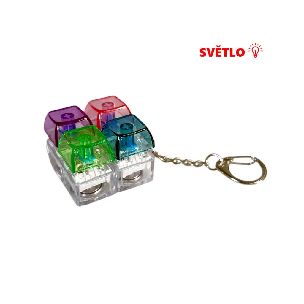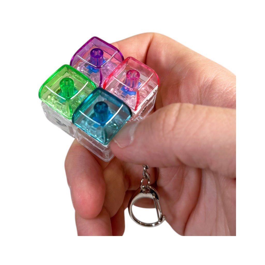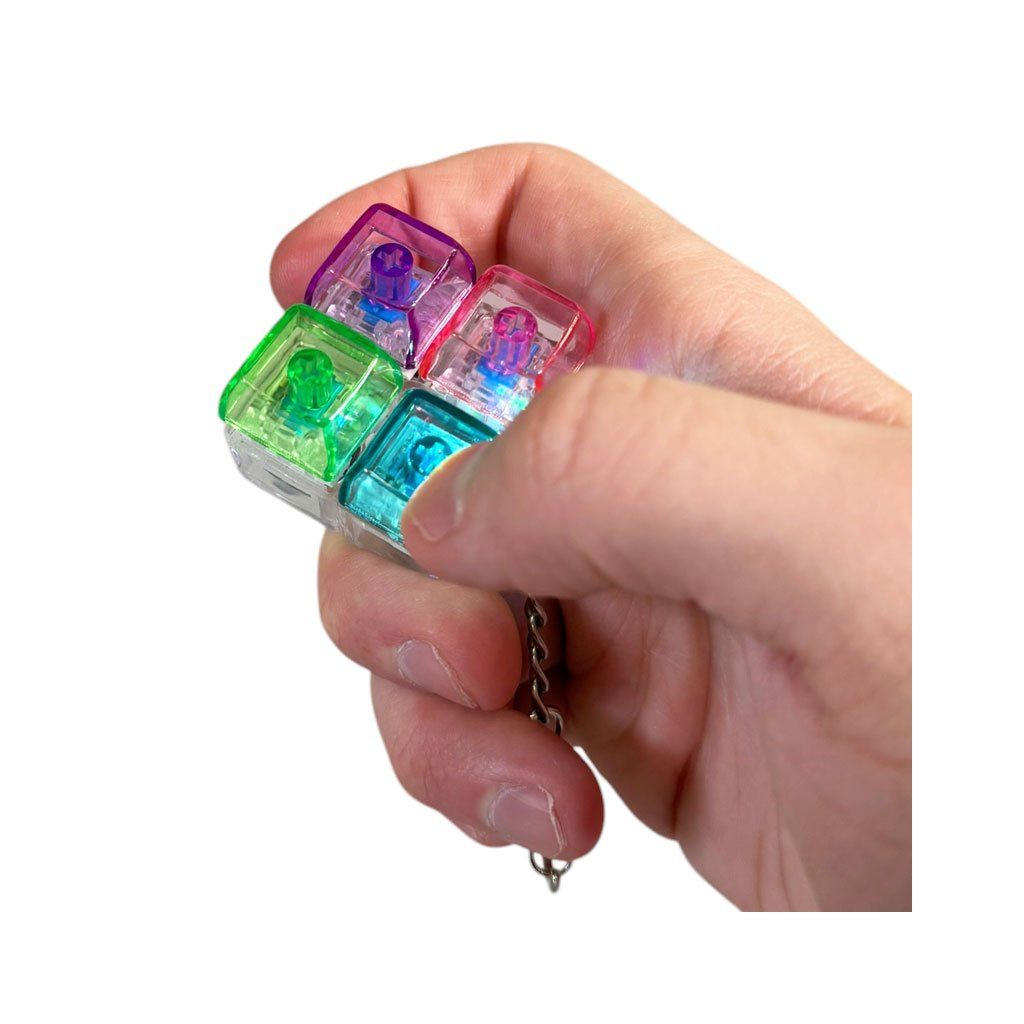 Antistresová hračka jako přívěsek na klíče se spínači jako má klávesnice. Slouží ke zmírnění stresu, úzkosti a pomáhá udržet soustředění klikáním na kláves. Skládá se ze čtyř průhledných mechanických spínačů s klávesami v různých barvách, které při každém stisknutí svítí.