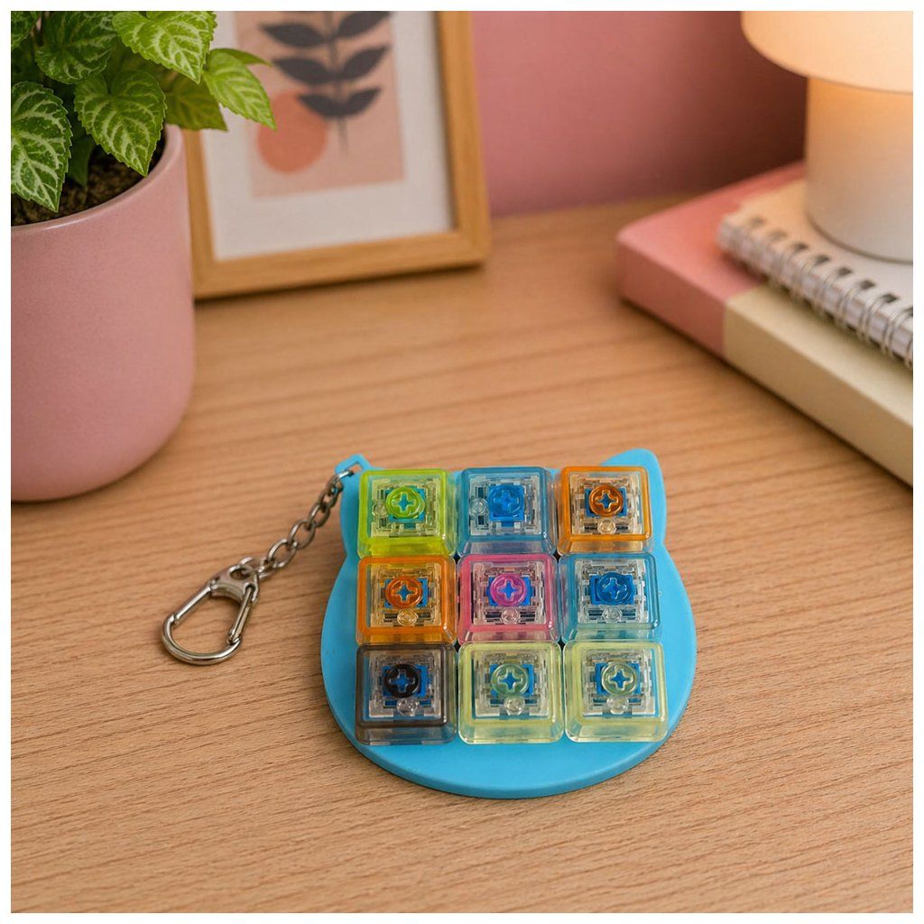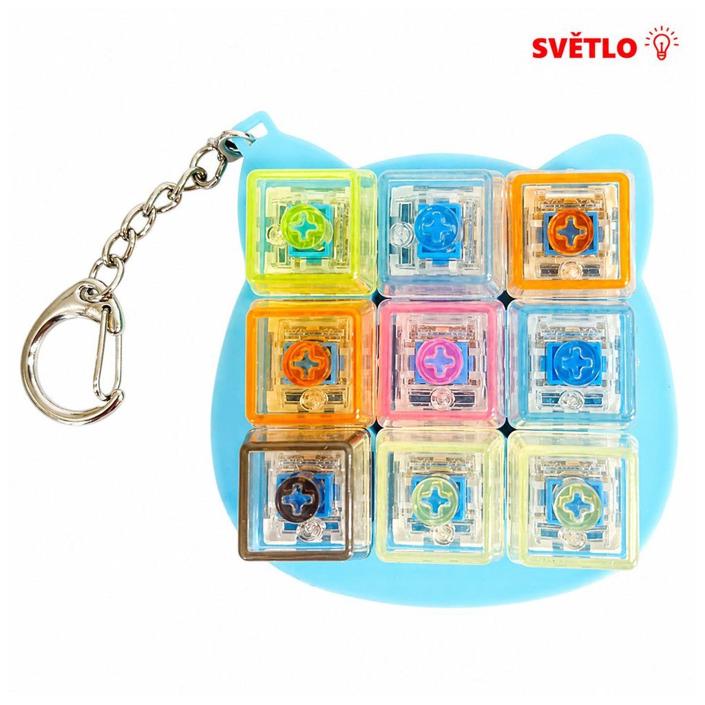 Antistresová hračka jako přívěsek na klíče se spínači jako má klávesnice. Slouží ke zmírnění stresu, úzkosti a pomáhá udržet soustředění klikáním na kláves. Skládá se ze čtyř průhledných mechanických spínačů s klávesami v různých barvách, které při každém stisknutí svítí.