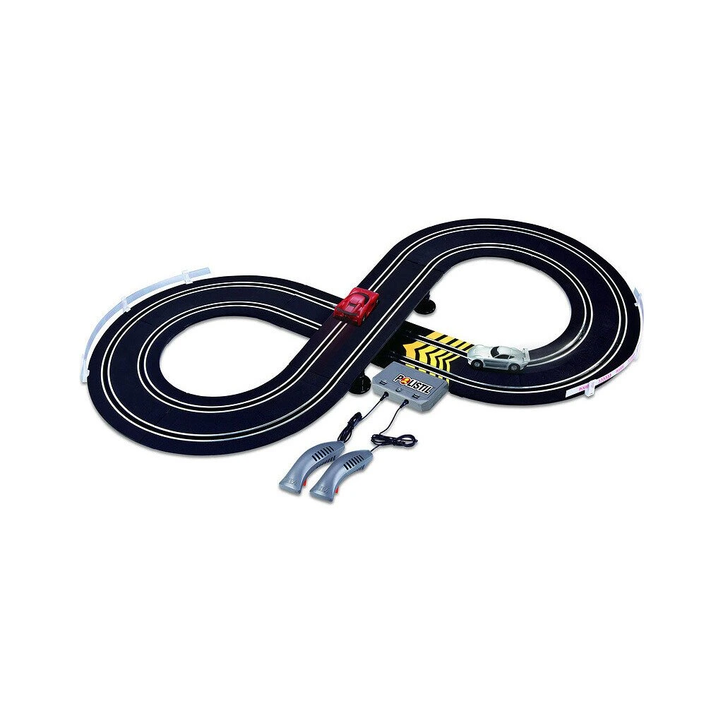 Polistil Autodráha 1:43 Vision Gran Turismo Race Circuit - uživatelsky jednoduchá analogová autodráha, napájena pomocí tužkových baterií. Podle obrázku v manuálu sestavíte díly autodráhy připojíte ovladače a doplníte 8x AA tužkové baterie - EM-B1320. Zapnete vypínač na startovní rovince a už můžete začít závodit. Každý ovladač řídí jedno autíčko na jedné dráze. Autodráha se dvěma jízdními pruhy má délku 2,27 m. Pro složení je nutný prostor 94 x 46 cm.