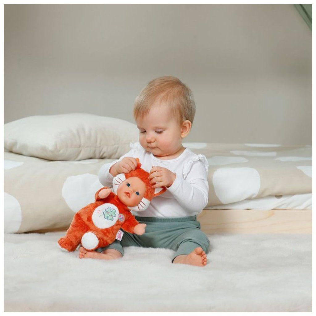 Nejroztomilejší kamarád v pokojíčku vašeho miminka! Lištička BABY born for babies je navržena pro miminka. Má měkkou vinylovou hlavičku a látkové tělíčko s kapsičkami na prsty, díky kterým lištička ožije a promění se ve veselého maňáska s liščím ocáskem. Měkká a hebká panenka je ideální na mazlení a nemusíte se bát ani toho, když se zašpiní. Lze ji snadno prát na 30° C.