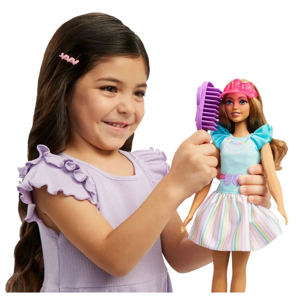 Děti mohou panence pomocí velkého kartáče česat a upravovat vlasy, což pomáhá rozvíjet zručnost a učení se osobní péči. Panenky Moje první Barbie® podněcují malé hlavičky k objevování příběhů o přátelství a hraní si s módou! Panenky se prodávají samostatně v závislosti na dostupnosti. Panenky nemohou stát samostatně. Barvy a provedení se mohou lišit.