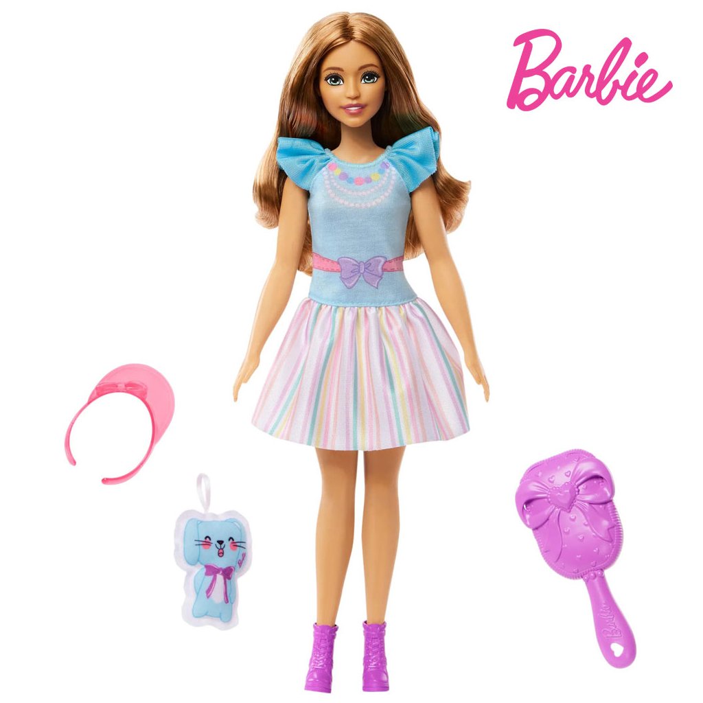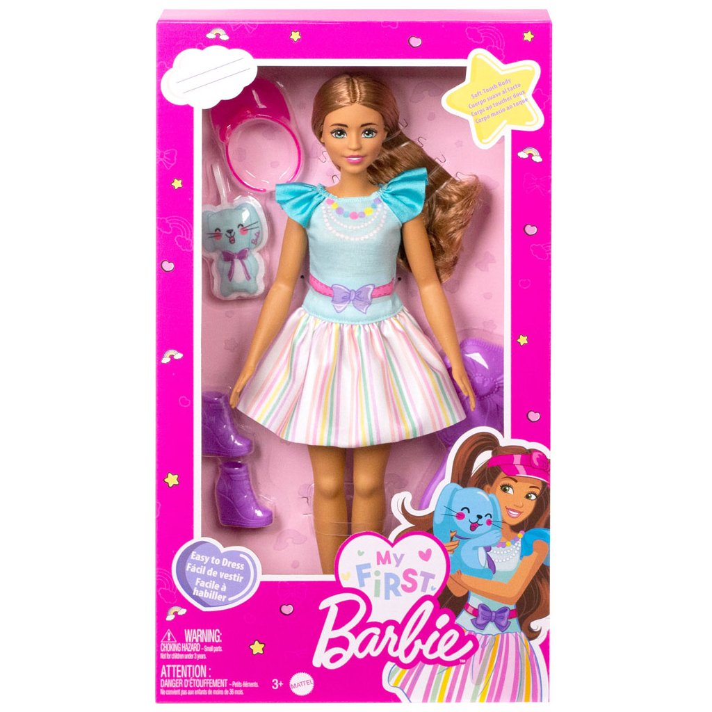 Představujeme novou kolekci hraček Moje první Barbie™, která je speciálně navržena pro předškoláky! Tyto roztomilé větší panenky jsou pózovatelné a mají na dotek krásně měkká tělíčka. Panenky jsou vysoké 34 cm, jejich ruce a nohy jsou snadno pohyblivé, a tak je oblékání hračka.