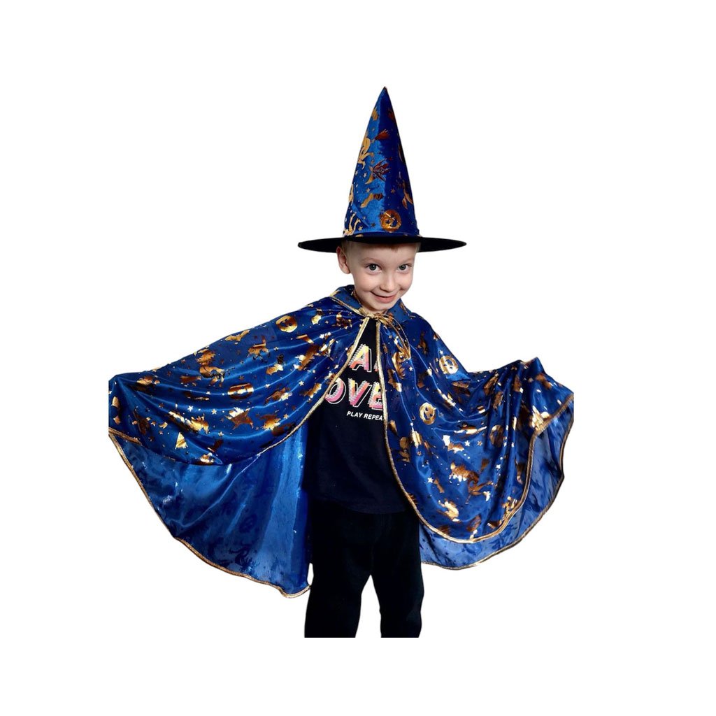 Čarodějnický plášť s kloboukem modrý 2 (1238)