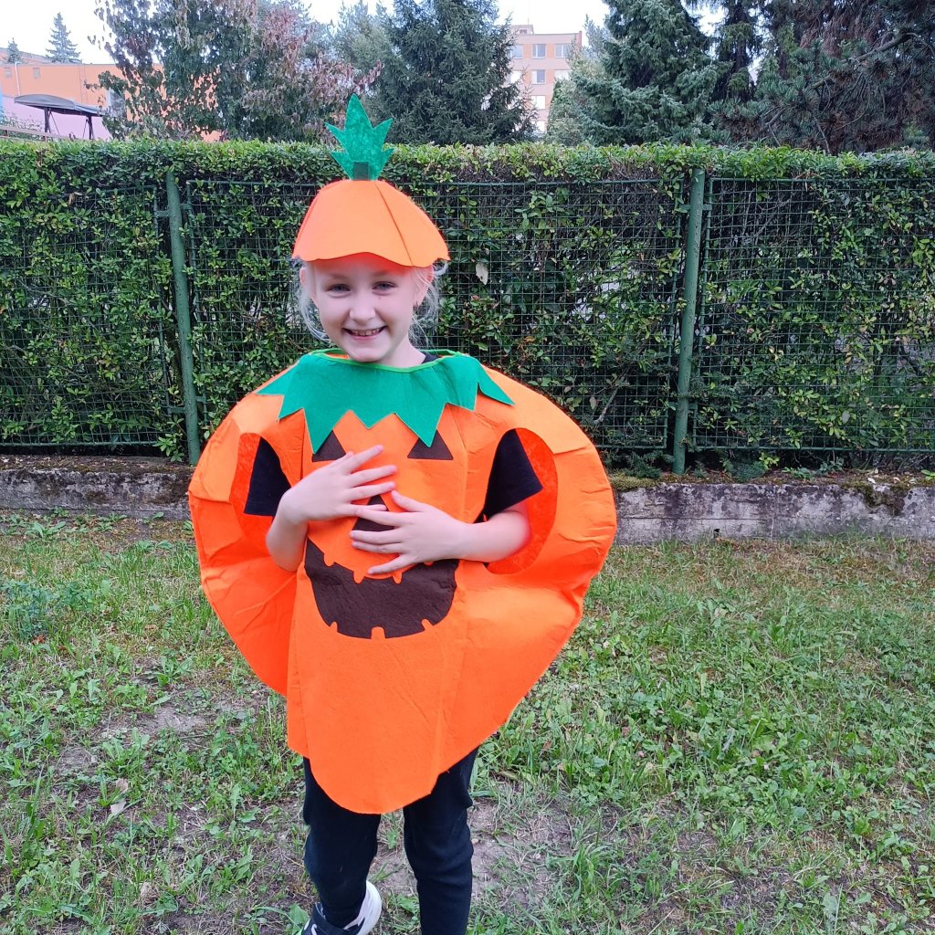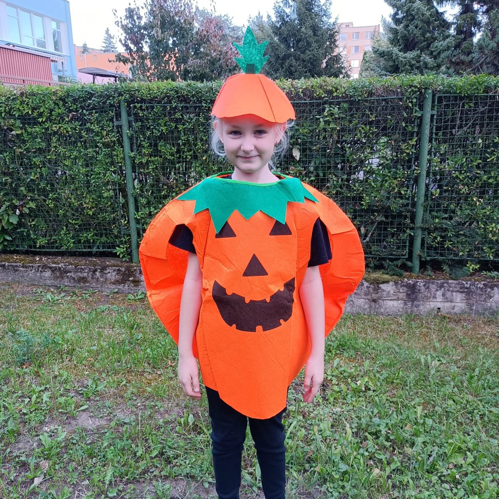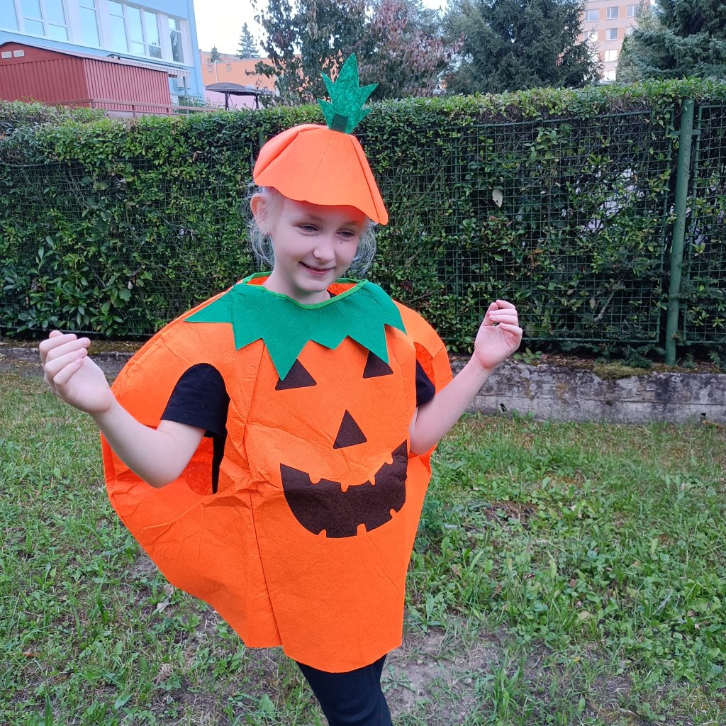 Originální dětský kostým na halloween, karneval či tematické párty. Kostým obsahuje dýni na tělo a čepičku.