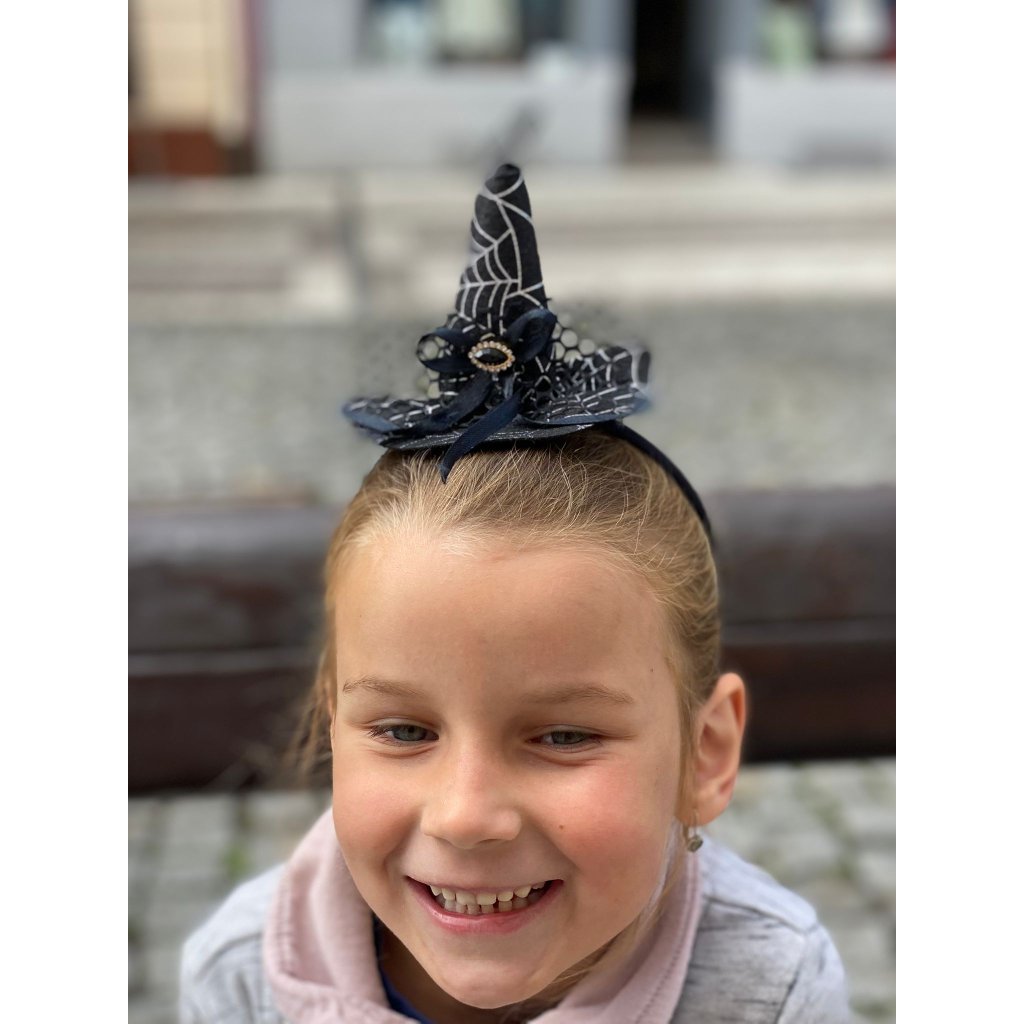 Úchvatná čelenka je zdobená kloboukem v halloweenském stylu, který okouzlí každého milovníka této magické noci. Tento kus je navržen s ohledem na detail a přestože je jednoduchý, je plný charakteru. Klobouk je zdoben nevšedními detaily, které vytváří dokonalou atmosféru Halloween.