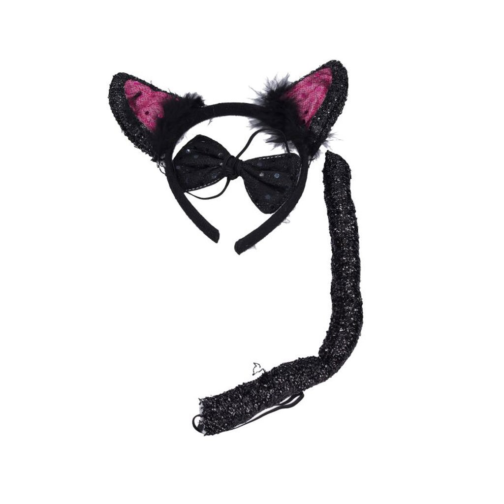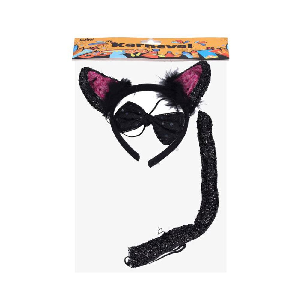 Kostýmový doplněk obsahuje tři kusy. Čelenku s oušky, mašličkou a ocáskem.