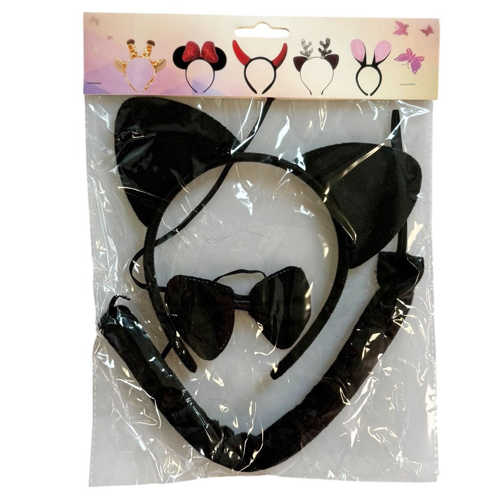 Kostýmový doplněk obsahuje tři kusy. Čelenku s oušky, mašličku a ocásek.