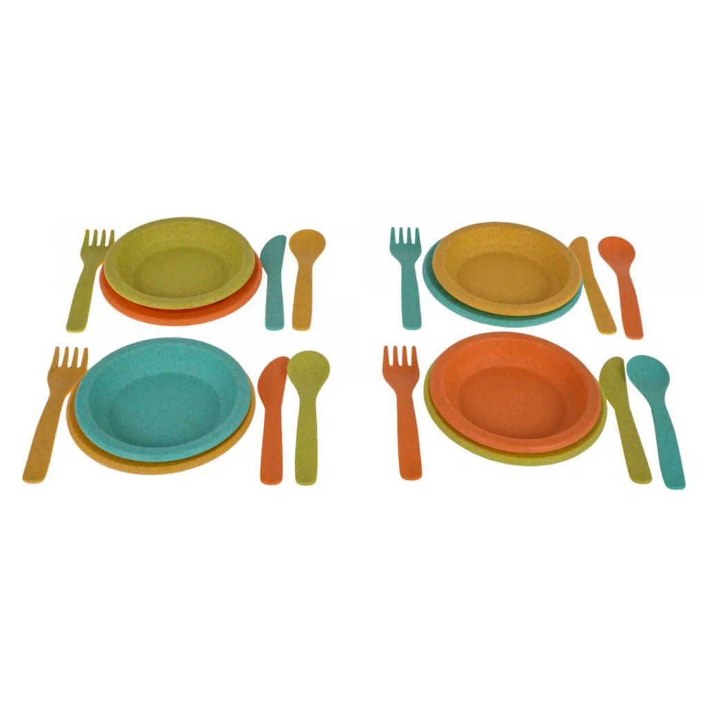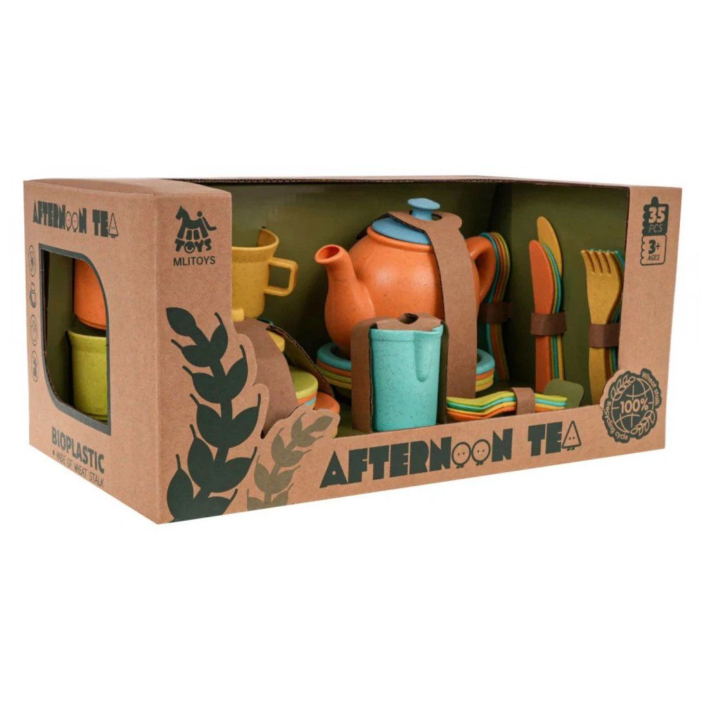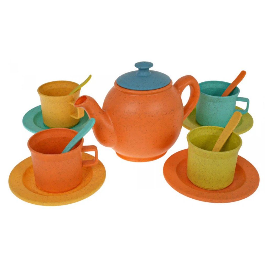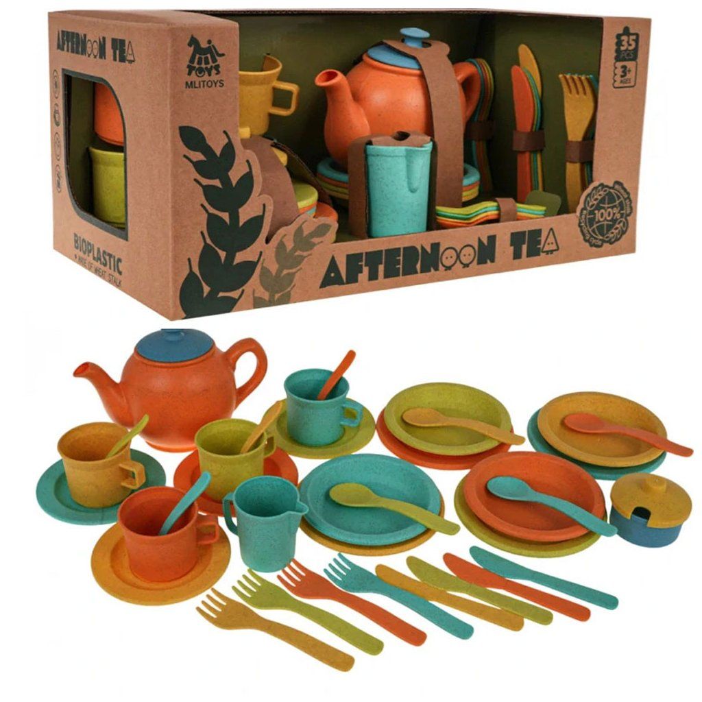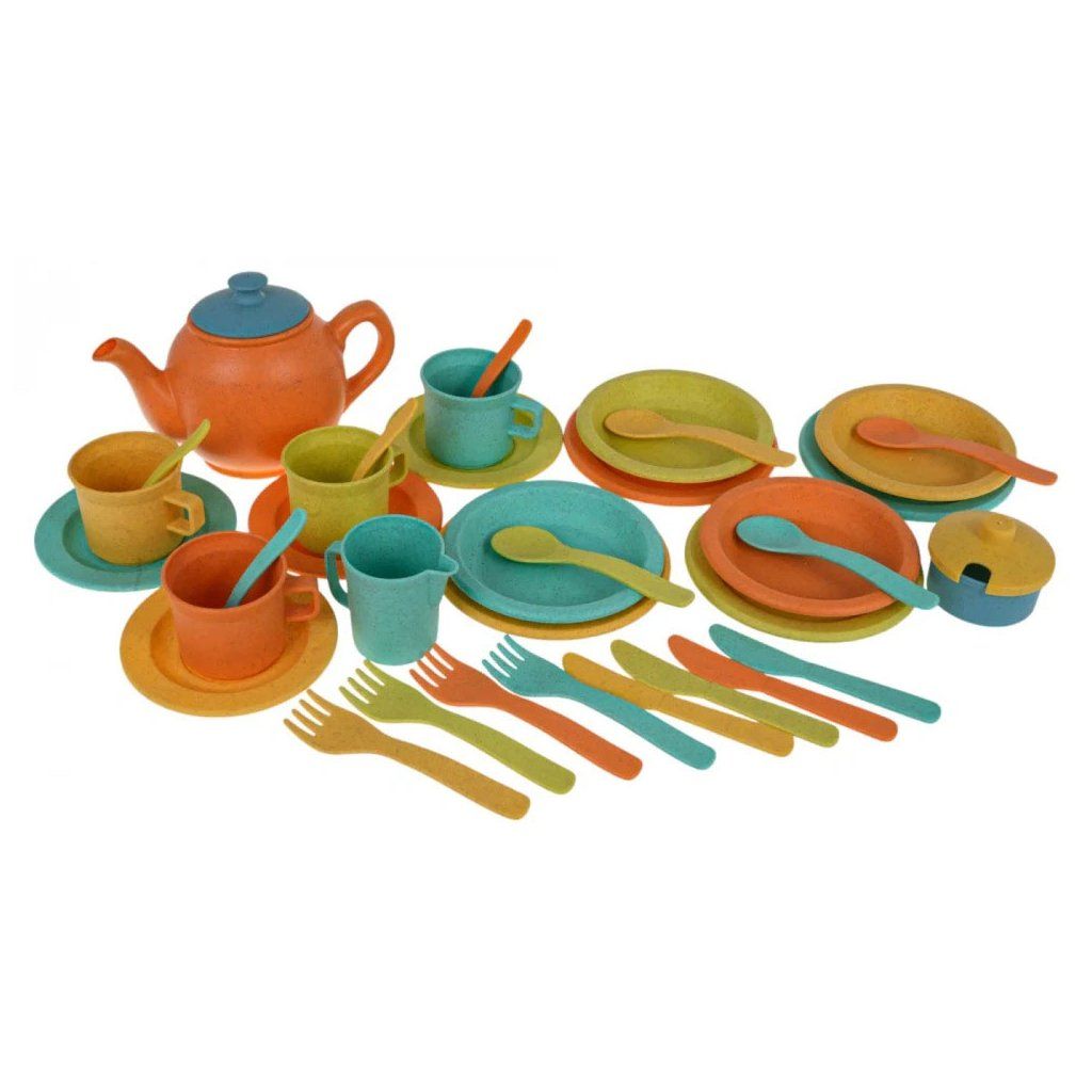 Kávová nebo pikniková souprava z bioplastu pro dítě od 3 let. Souprava se skládá z 35 kusů v různých barvách. Máme čajovou konvici, podšálky na šálky, šálky, lžičky, hrnec s poklicí, džbán s výlevkou, talíře, nože, lžíce, vidličky. Tato sada nabízí neomezené možnosti ke hraní. Materiál soupravy je šetrný k dětem a životnímu prostředí.