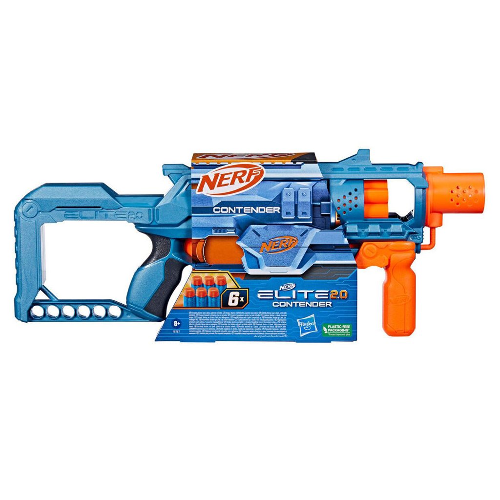 S blasterem Nerf Elite 2.0 Contender můžete vyhrát! Tento Nerf blaster má buben se 6 šipkami, který uvolňujete po jedné ve vysoce energetických dětských venkovních hrách. Tento blaster na dvorek obsahuje 6 šipek Nerf Elite k naplnění bubnu. Naplňte blaster pomocí rukojeti, která pomáhá stabilizovat váš cíl, když se pustíte do bitev Nerf.