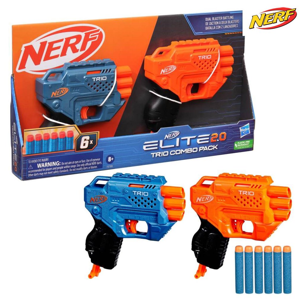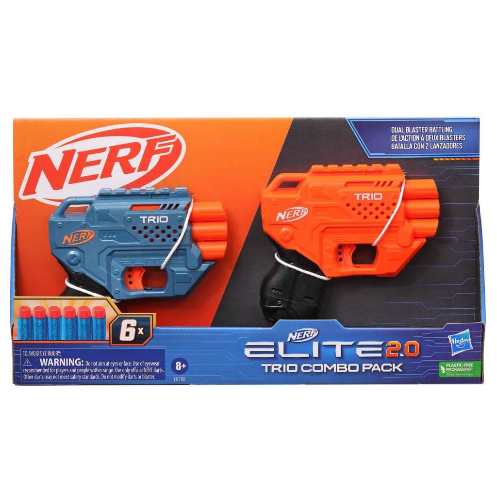 ERF ELITE 2.0 TRIO COMBO PACK 2-BLASTER SADA: Zdvojnásobte si zábavu s palbou šipek s touto sadou, která obsahuje 2 blastery Nerf Elite 2.0 Trio pro souboje dvěma blastery.