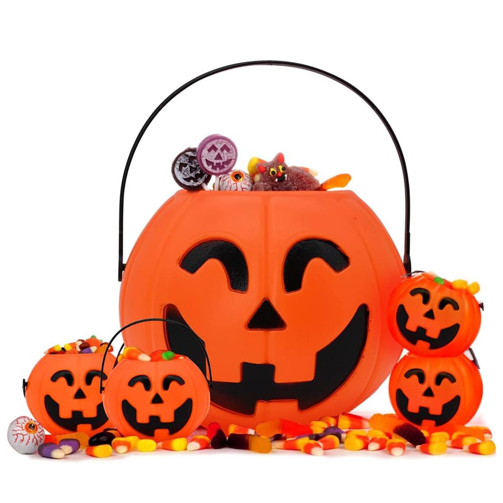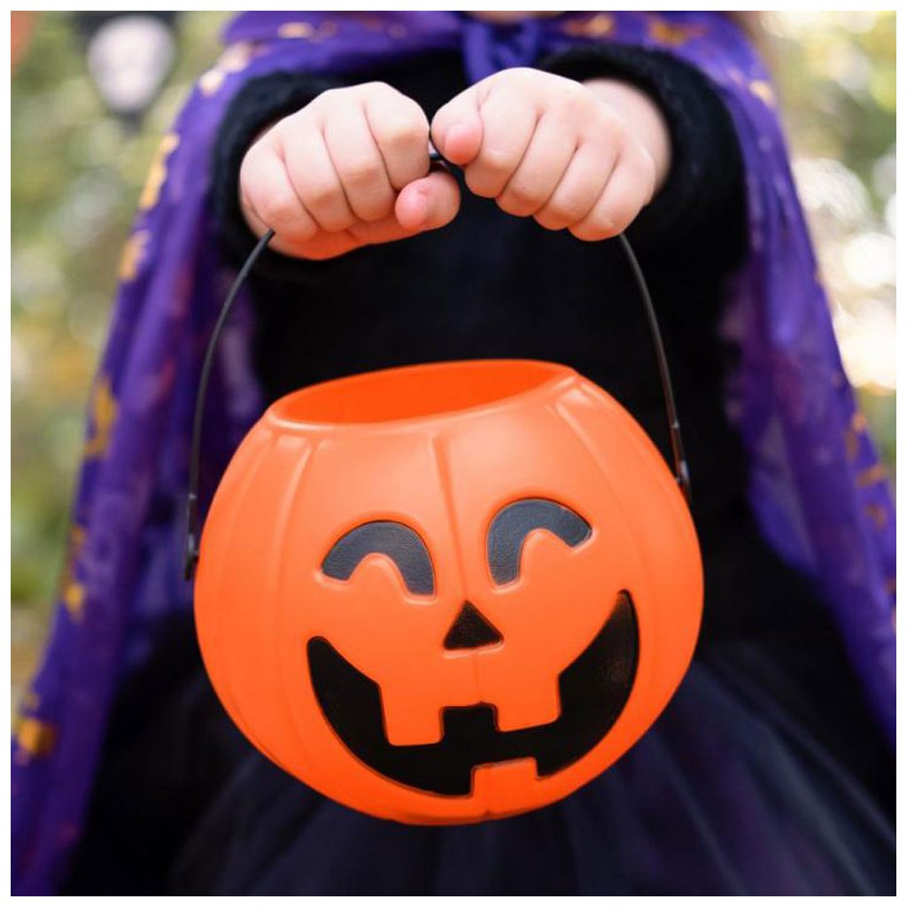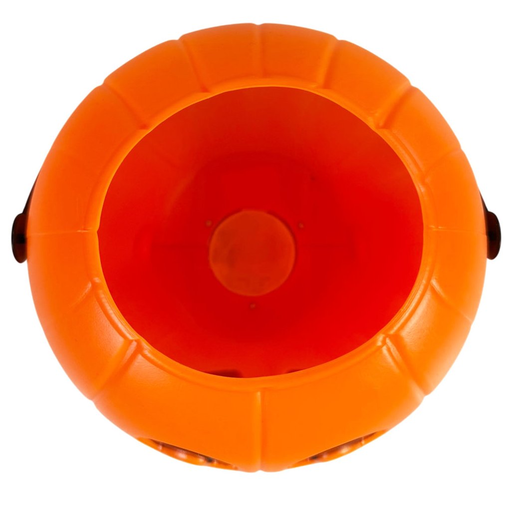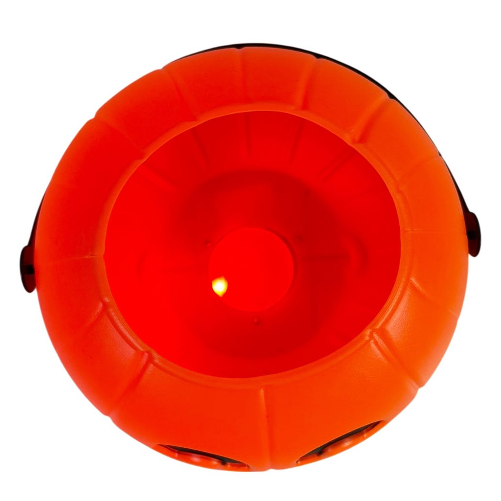 Halloweenský kotlík v provedení dýně s uchem, který můžete použít jako dekoraci na Halloweenskou party, košík na bonbóny nebo použít jej místo lampionu do průvodu. Po přepnutí kotlík svítí.