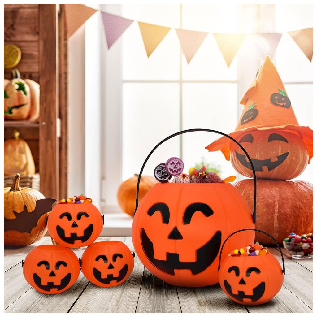 Halloweenský kotlík v provedení dýně s uchem, který můžete použít jako dekoraci na Halloweenskou party, košík na bonbóny nebo použít jej místo lampionu do průvodu. Po přepnutí kotlík svítí a vydává zvuky.