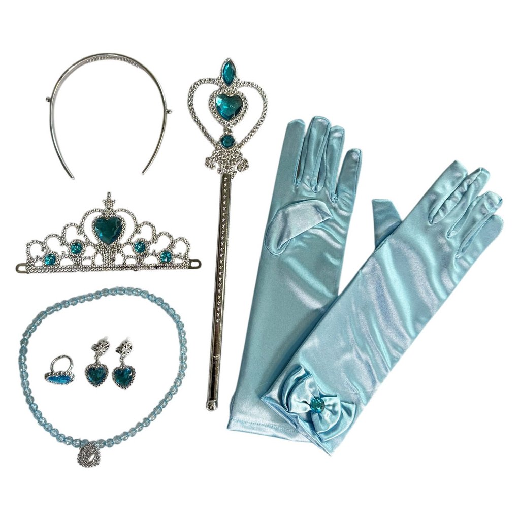 Obsah balení: rukavice, hůlka, korunka, čelenka, náhrdelník, prsten, náušnice