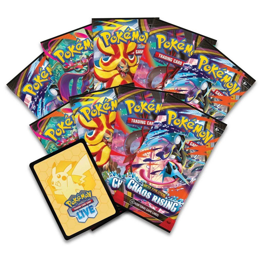 Pokémon Mega Evolution Chaos Rising obsahuje celkem více než 120 karet, včetně nejméně 20 karet trenérů a více než 35 karet s exkluzivními ilustracemi trenérů a jejich Pokémonů.