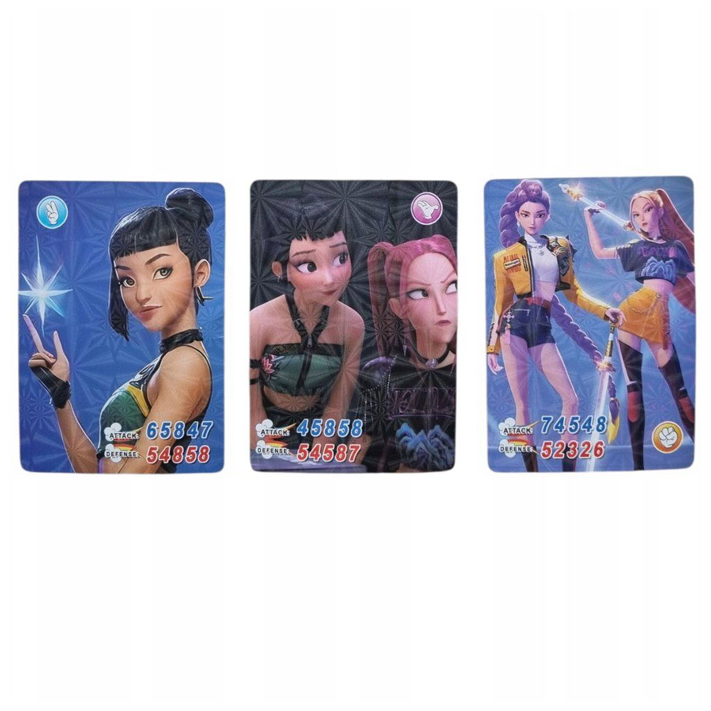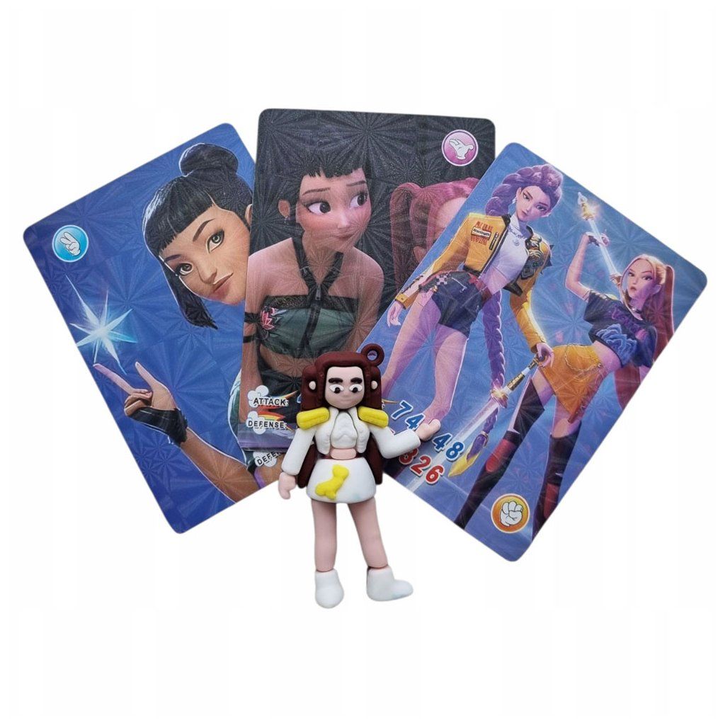 Přineste si domů krásné figurky s kartami ze seriálu KPop Demon Hunters a nasbírejte všechny figurky! V každém balení na Vás čeká figurka a tři karty. Figurka je velká 6 centimetrů. Nasbírejte je všechny!