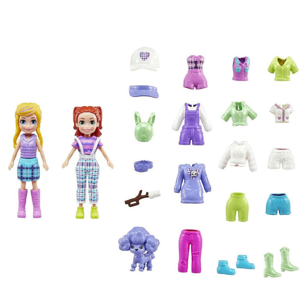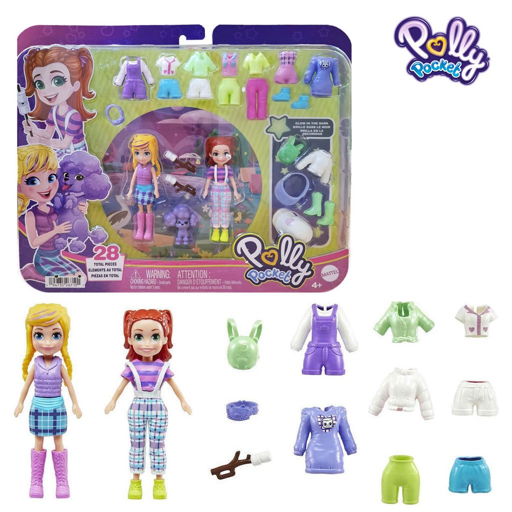 Vítejte ve světě Polly Pocket. Vydejte se do dobrodružství s panenkami. V sadě najdete dvě panenky a spoustu oblečku a doplňků. Tématické sada obsahuje celkem 28 kusů.