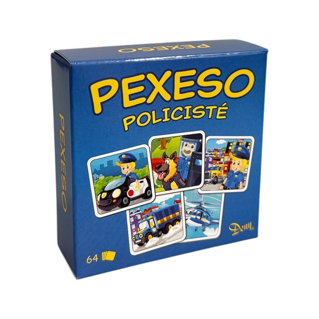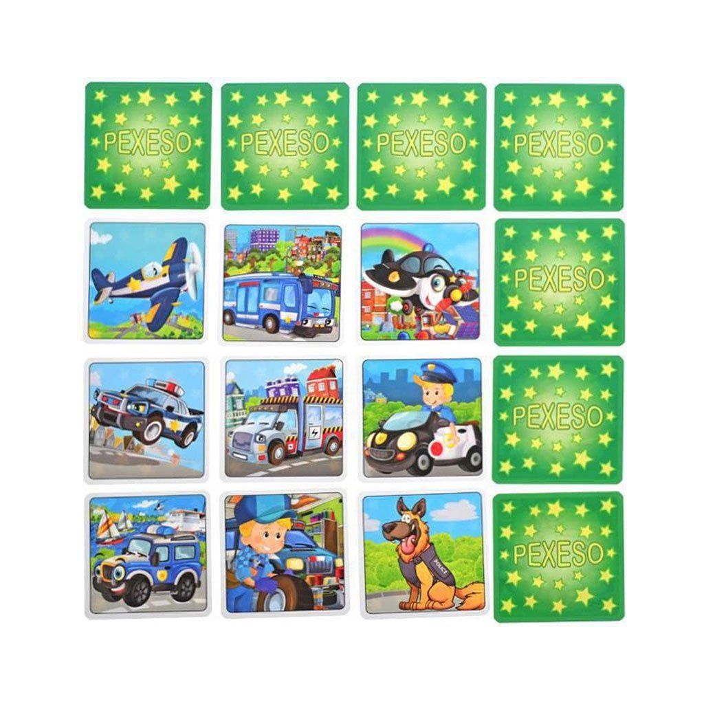 Pexeso Policisté v krabičce. Balení obsahuje 64 karet (32 párů) + 2 karty s pravidly.