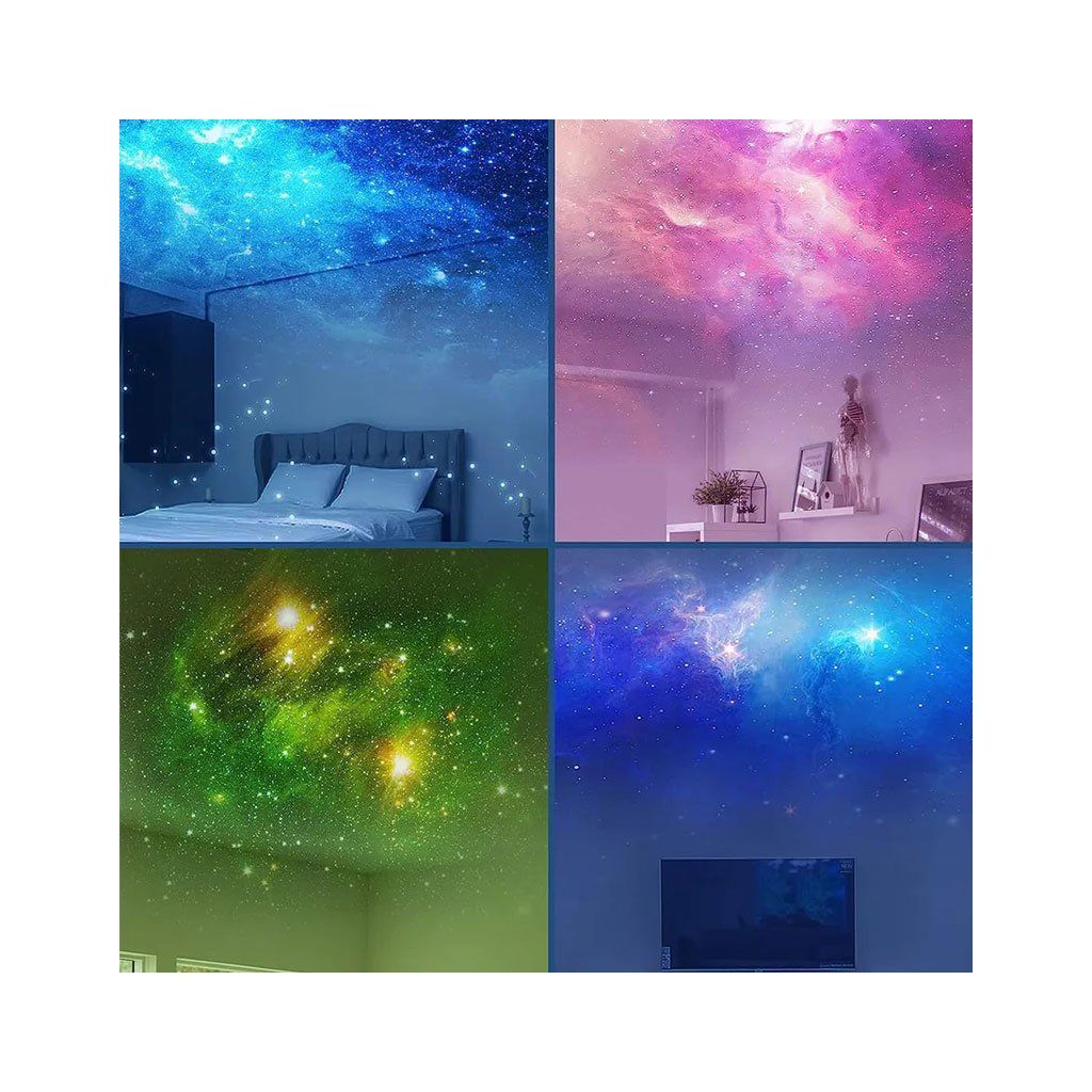 Hvězdný projektor přináší do interiéru realistickou projekci noční oblohy, která kombinuje barevnou LED mlhovinu s jemnými zelenými laserovými hvězdami. Výsledkem je působivý vesmírný efekt, který okamžitě navodí klidnou a relaxační atmosféru.