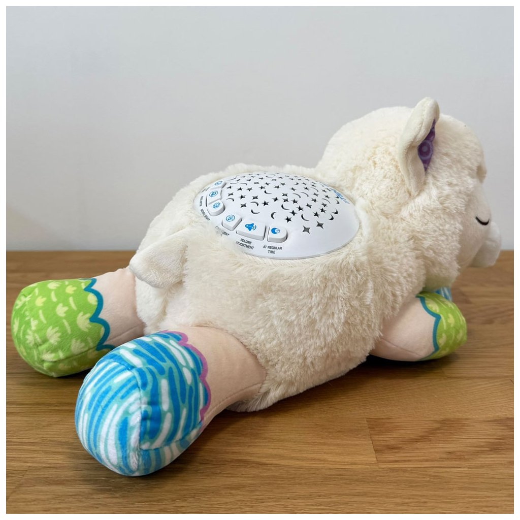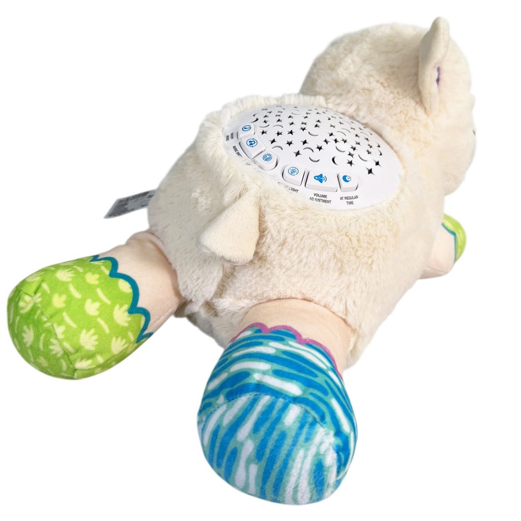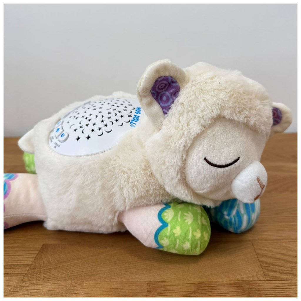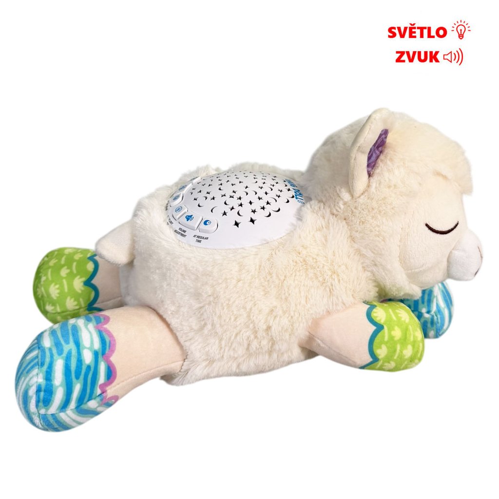 Světla mění barvu a ukazují hvězdy, měsíc a planety. Celou akci doprovází uklidňující, relaxační hudba se zvuky přírody v pozadí. Hračka má několik různých ukolébavek. Hudební box přehrává ukolébavky nepřetržitě téměř 20 minut, takže vaše dítě má čas krásně usnout, aniž byste museli ukolébavky znovu zapínat a riskovat, že se vaše děťátko vzbudí. Když děťátko usne, lze ukolébavky vypnout pomocí tlačítka na bříšku. Ovečka má dvě úrovně hlasitosti, takže jej lze dokonale přizpůsobit potřebám dítěte.