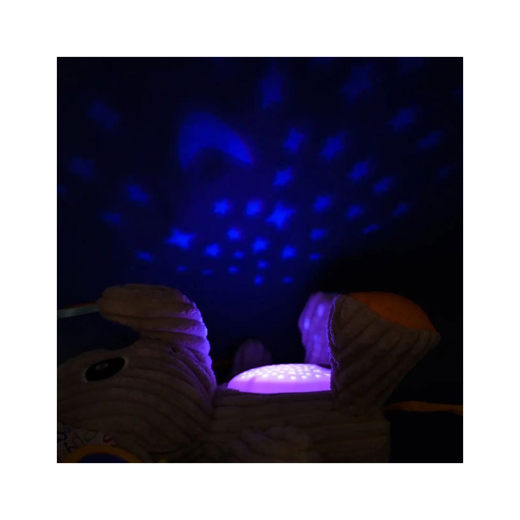 Světla mění barvu a ukazují hvězdy, měsíc a planety. Celou akci doprovází uklidňující, relaxační hudba se zvuky přírody v pozadí. Hračka má několik různých ukolébavek. Hudební box přehrává ukolébavky nepřetržitě téměř 20 minut, takže vaše dítě má čas krásně usnout, aniž byste museli ukolébavky znovu zapínat a riskovat, že se vaše děťátko vzbudí. Když děťátko usne, lze ukolébavky vypnout pomocí tlačítka na bříšku. Slon má dvě úrovně hlasitosti, takže jej lze dokonale přizpůsobit potřebám dítěte.