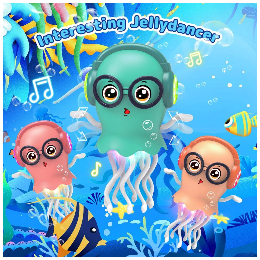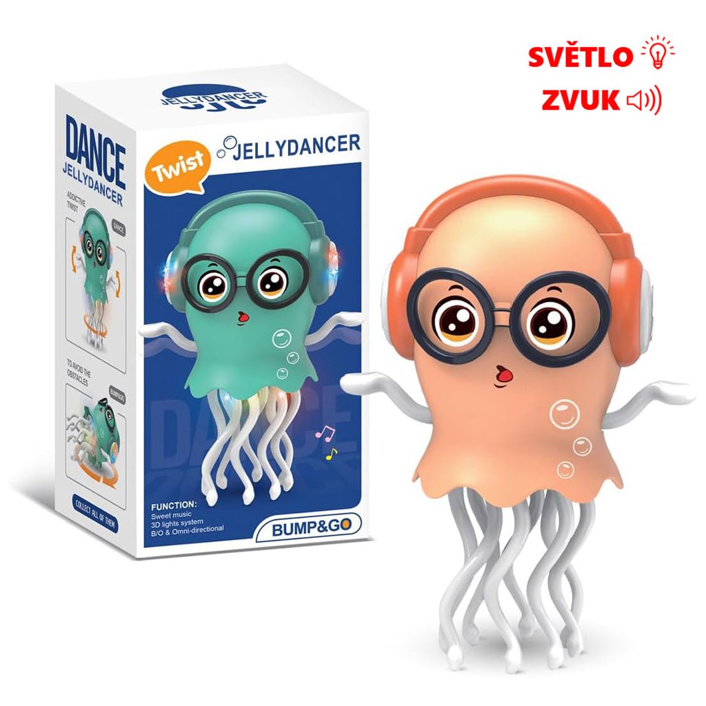 Tato okouzlující želé tanečnice fascinuje nejmenší zářivými 3D světly, která se třpytí v duhových barvách, a uklidňujícími melodiemi, které vzbuzují radost. Hračka Tančící želé tanečník umožňuje dětem "chytit" pohybujícího se mořského tvora a podněcuje tak kreativní hru