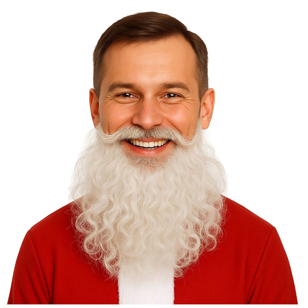 Bílé vousy jsou vhodné zejména pro Mikuláše, trpaslíka nebo čaroděje. Dají se ale také použít pro masku dědečka či pohádkové postavy. Upevňují se pomocí gumy vedené za hlavou a mají otvor pro ústa.