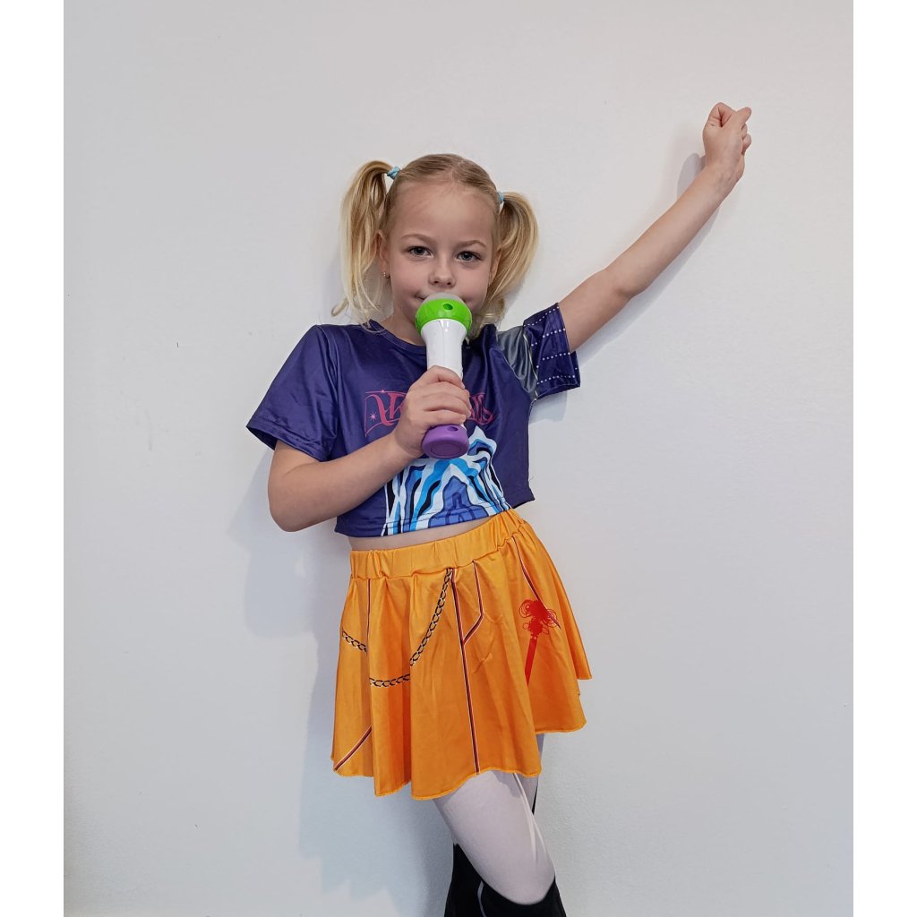 Vstupte do světa K-popu jako lovkyně démonů v tomto stylovém 2-dílném cosplayovém oblečení. Parádní kostým Rumi se skládá ze sukně s kalhotami a trička.