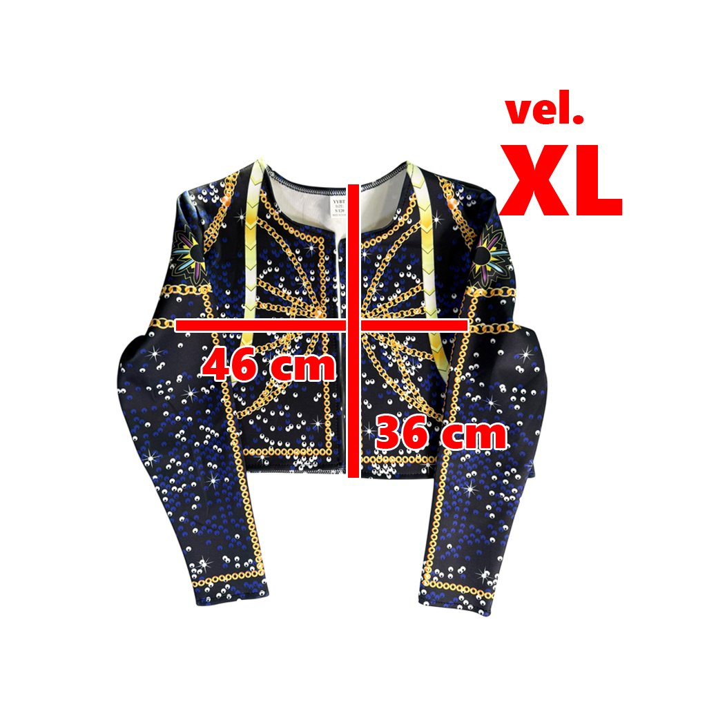 Velikost XL: Top šířka 43, výška 36,5 | Bunda šířka 46, výška 36 | Kraťasy šířka 29, výška 33