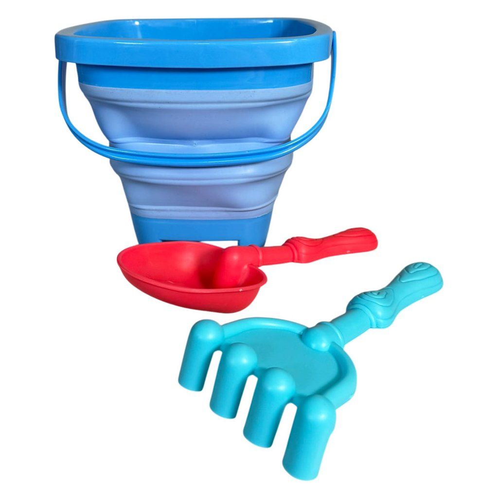 Sada na písek kyblíček gumový skládací modrý 2 (0355)