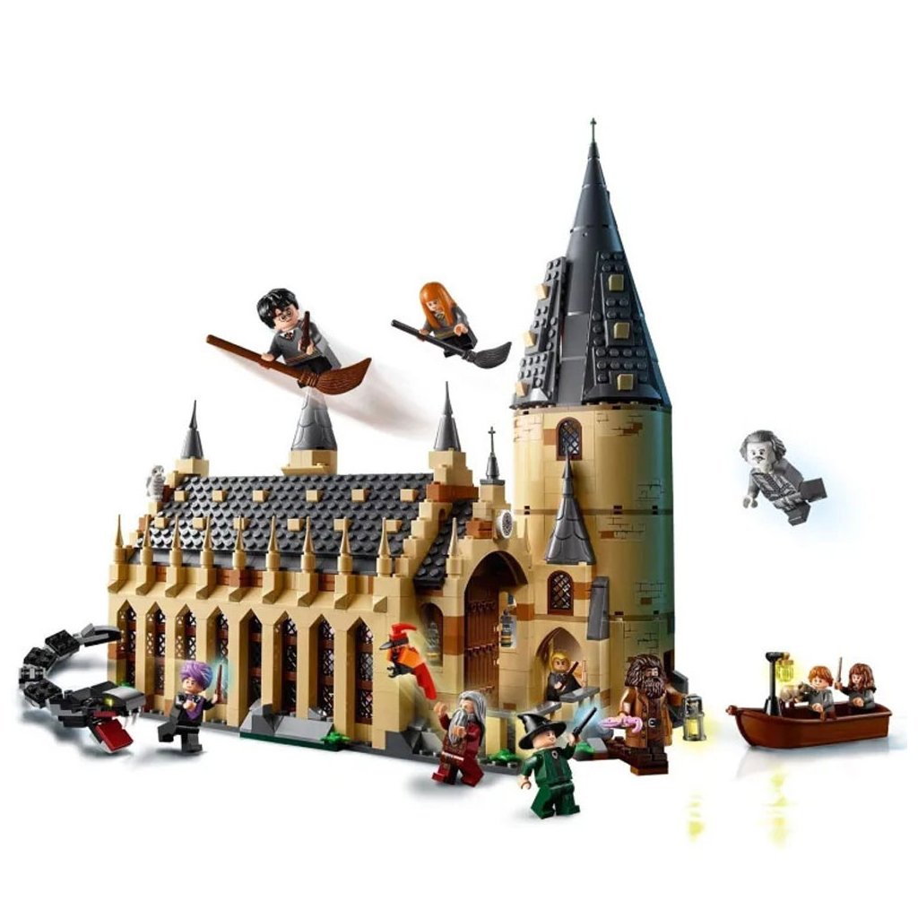 Postav fantastický svět plný kouzel z filmů s Harry Potterem s touto propracovanou 4patrovou LEGO® stavebnicí 75954 Bradavická Velká síň, která obsahuje krb, lavice, stoly a oboustranné prapory, a k tomu navíc věž s velkým točitým schodištěm, místnost s lektvary, místnost s pokladem, rozřazovací klobouk, zrcadlo z Erisedu a spoustu doplňků v podobě kouzelných artefaktů. Tento fantastický hrad umožňující hraní rolí obsahuje 10 minifigurek a skládací figurky baziliška a Fawkese, a k tomu navíc figurky Hedviky a Prašivky.