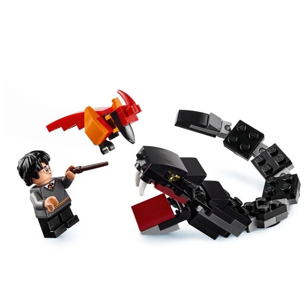 - Součástí sady je 10 minifigurek: Harry Potter™, Ron Weasley™, Hermiona Grangerová, Draco Malfoy™, Susan Bonesová, profesorka McGonagallová, profesor Quirrell s dvojí tváří Lorda Voldemorta, Hagrid™, Albus Brumbál a Skoro bezhlavý Nick, a k tomu navíc skládací bazilišek a Fawkes™ a figurky Hedviky a Prašivky.