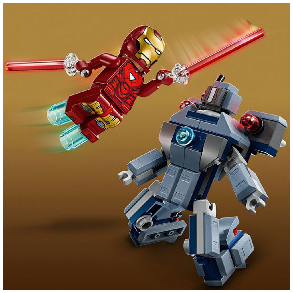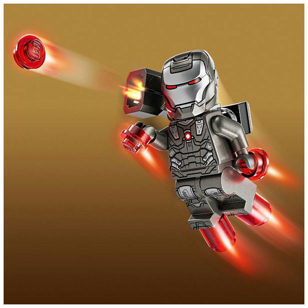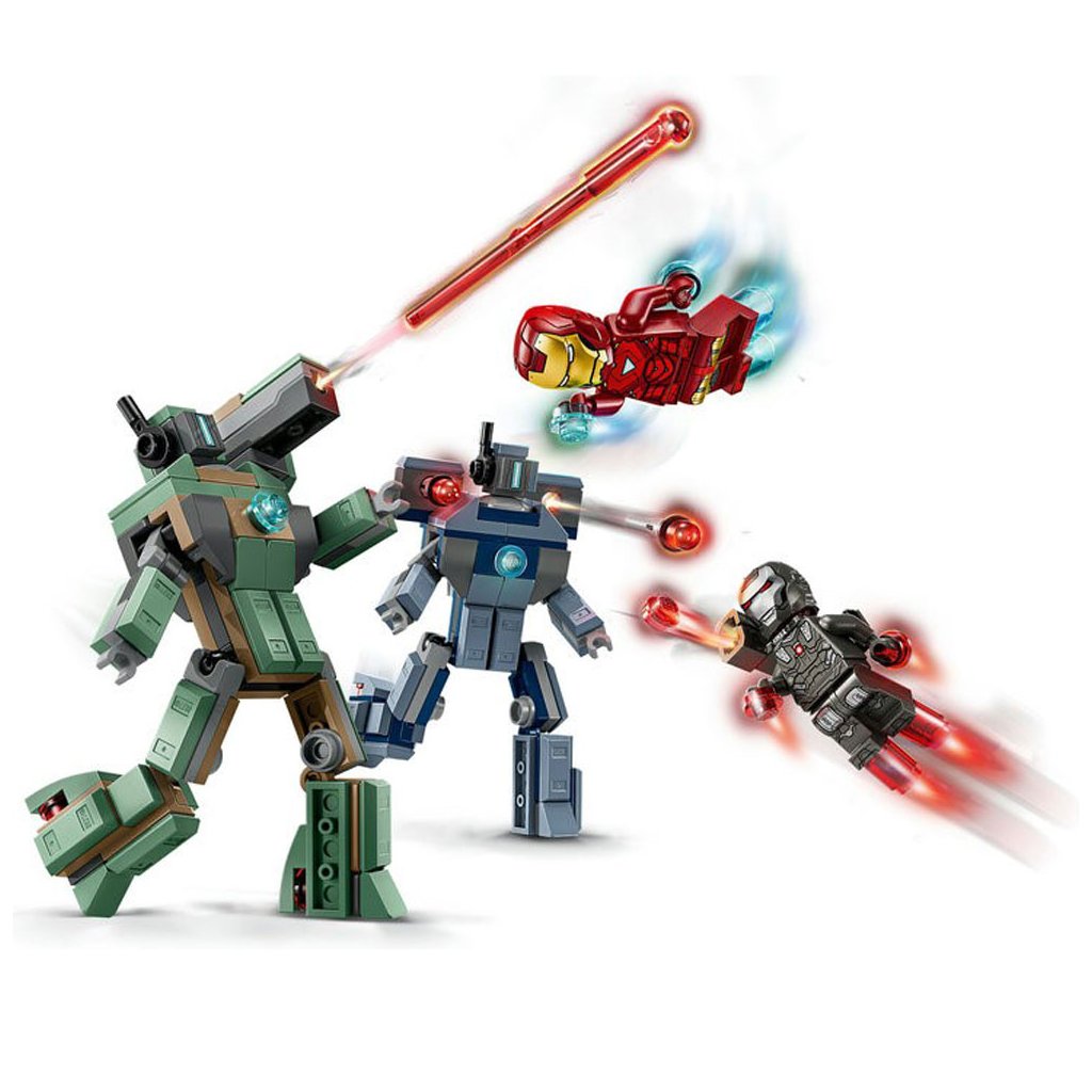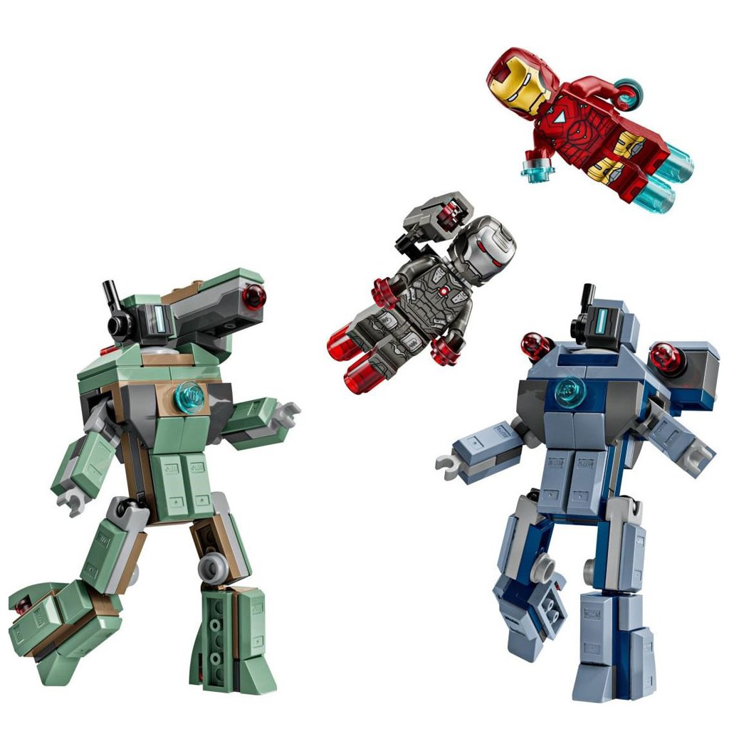 - Minifigurky LEGO® ǀ Marvel – Součástí je minifigurka Iron Mana s modrými blastery na rukou a nohou a laserovými zbraněmi a minifigurku War Machine s červenými blastery na rukou a nohou a vystřelovačem