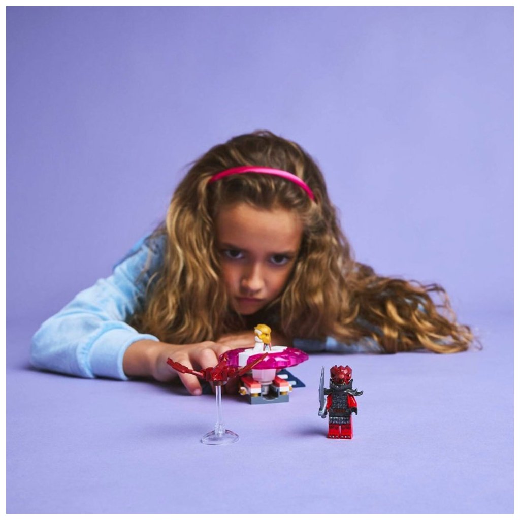 Děti si s nadšením postaví tuto malou stavebnici LEGO® a stisknutím tlačítka odpalovače vypustí Sorin dračí Spinjitzu spinner, který se roztočí, a budou sledovat, jestli 2 prvky síly odletí, když spinner zasáhne svůj cíl.