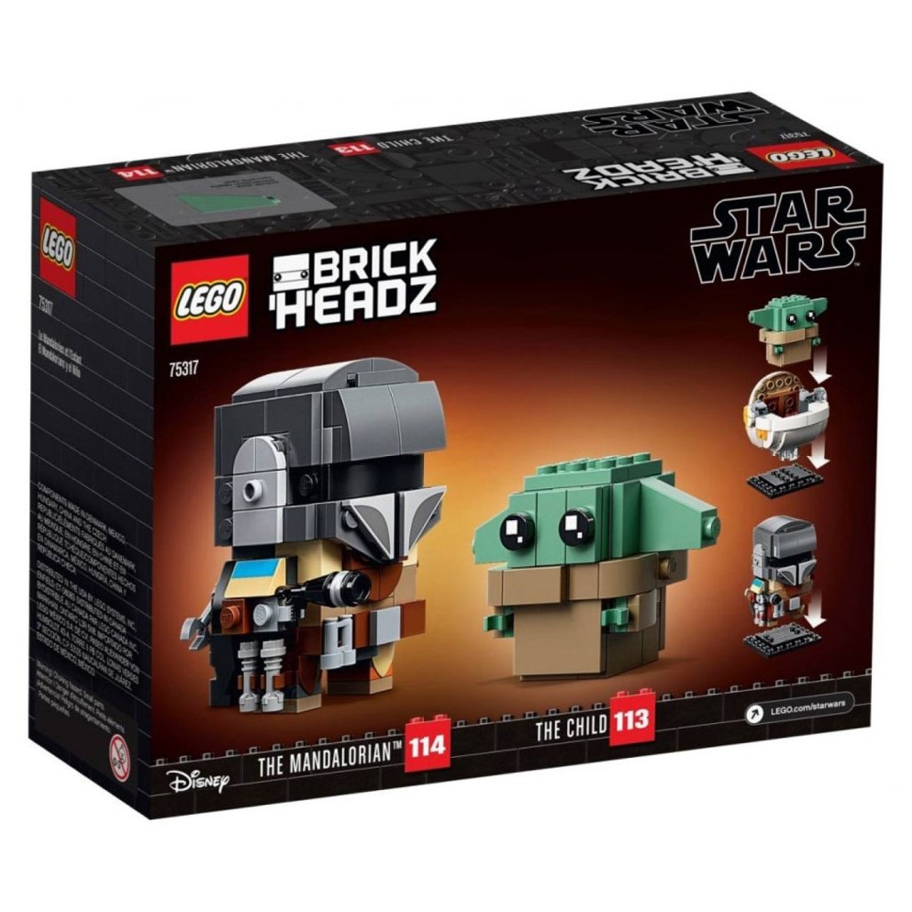 - Kreativní děti a fanoušci seriálu Star Wars: The Mandalorian si jistě s radostí postaví vlastní LEGO® BrickHeadz™ figurky dítěte a Mandaloriana (75317), včetně autentických prvků, které po vystavení zaujmou na první pohled.