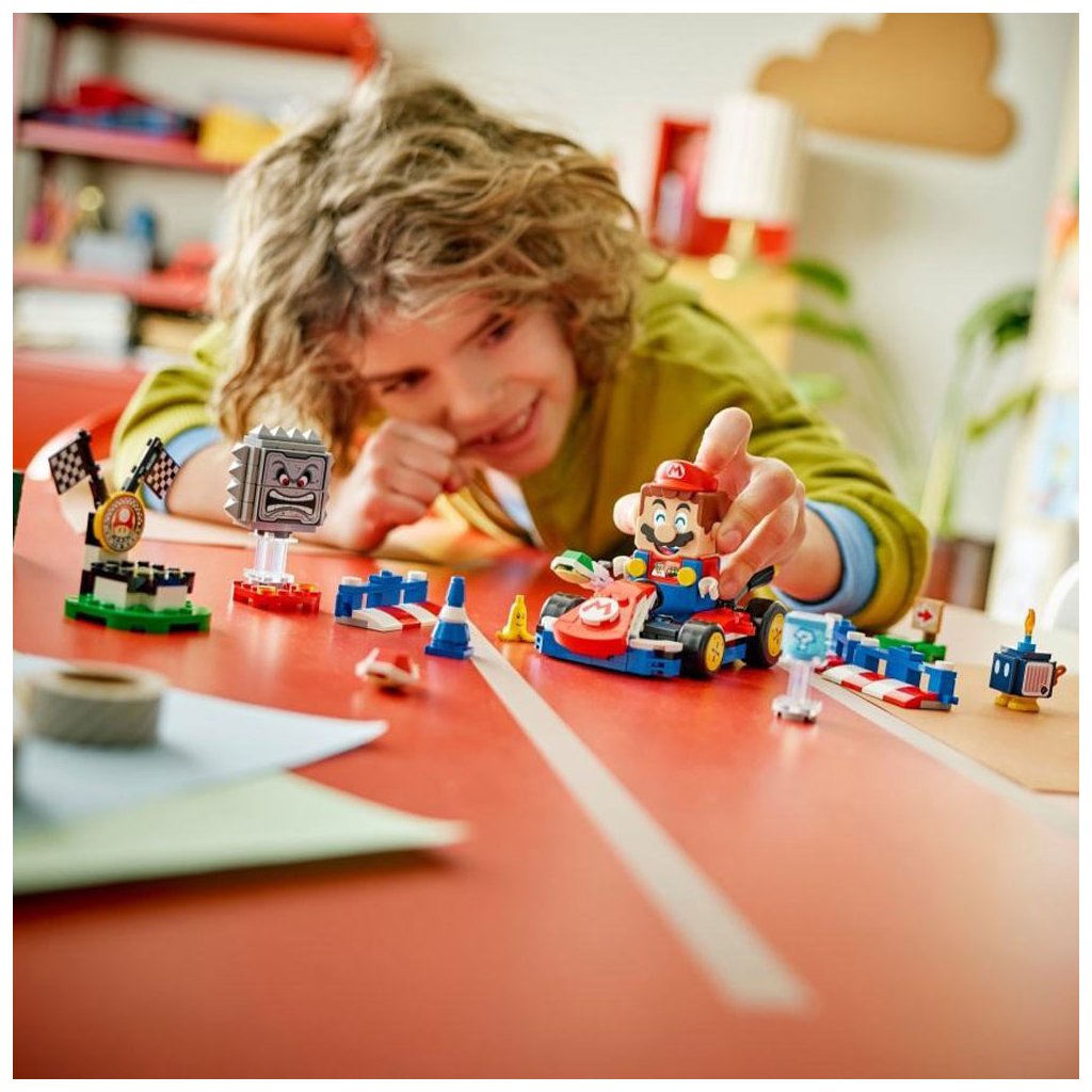 - Interaktivní hračka – Závoďte na motokáře Standard Kart s LEGO® Mariem, získejte digitální odměny z krabice Item Box, porazte Bob-omba a Thwompa, sledujte, jak LEGO Mario™ reaguje na zelené a červené destičky LEGO a mnoho dalšího