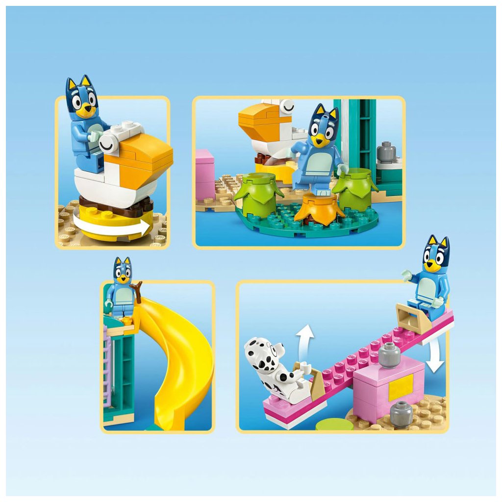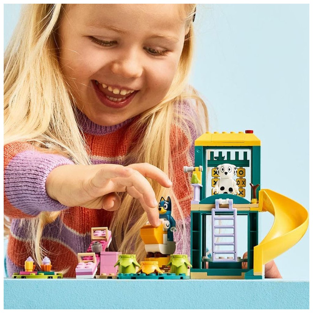 - Interaktivní hračka pro děti od 4 let – Fanoušci televizního seriálu Bluey se připojí k minifigurkám Bluey a Chloe na pestrobarevném hřišti s houpačkou, skluzavkou, prolézačkou a dalšími prvky