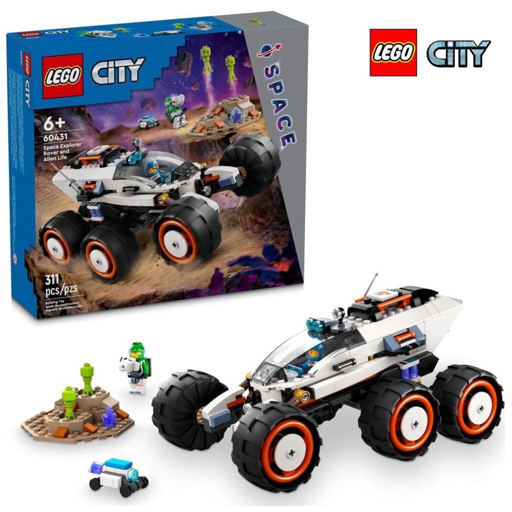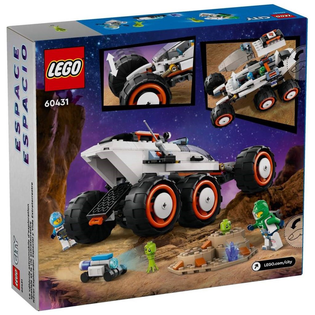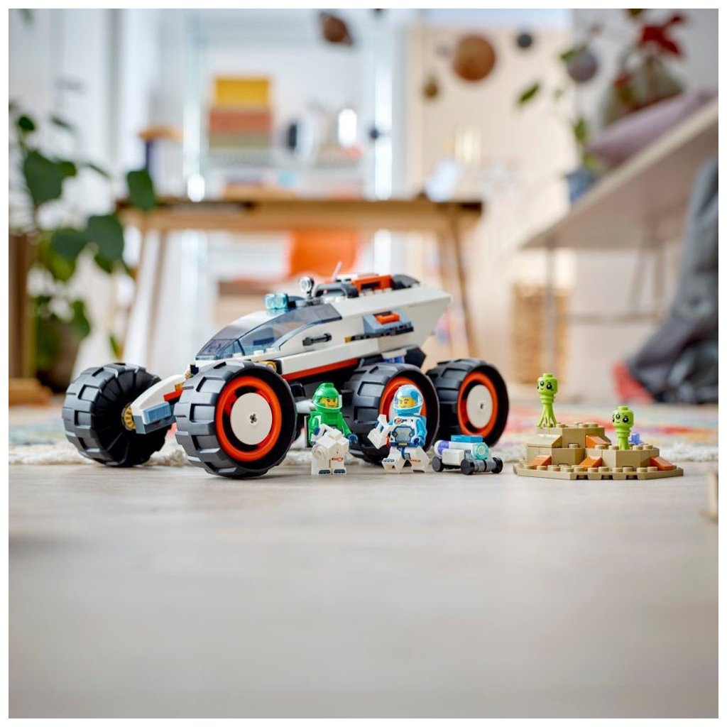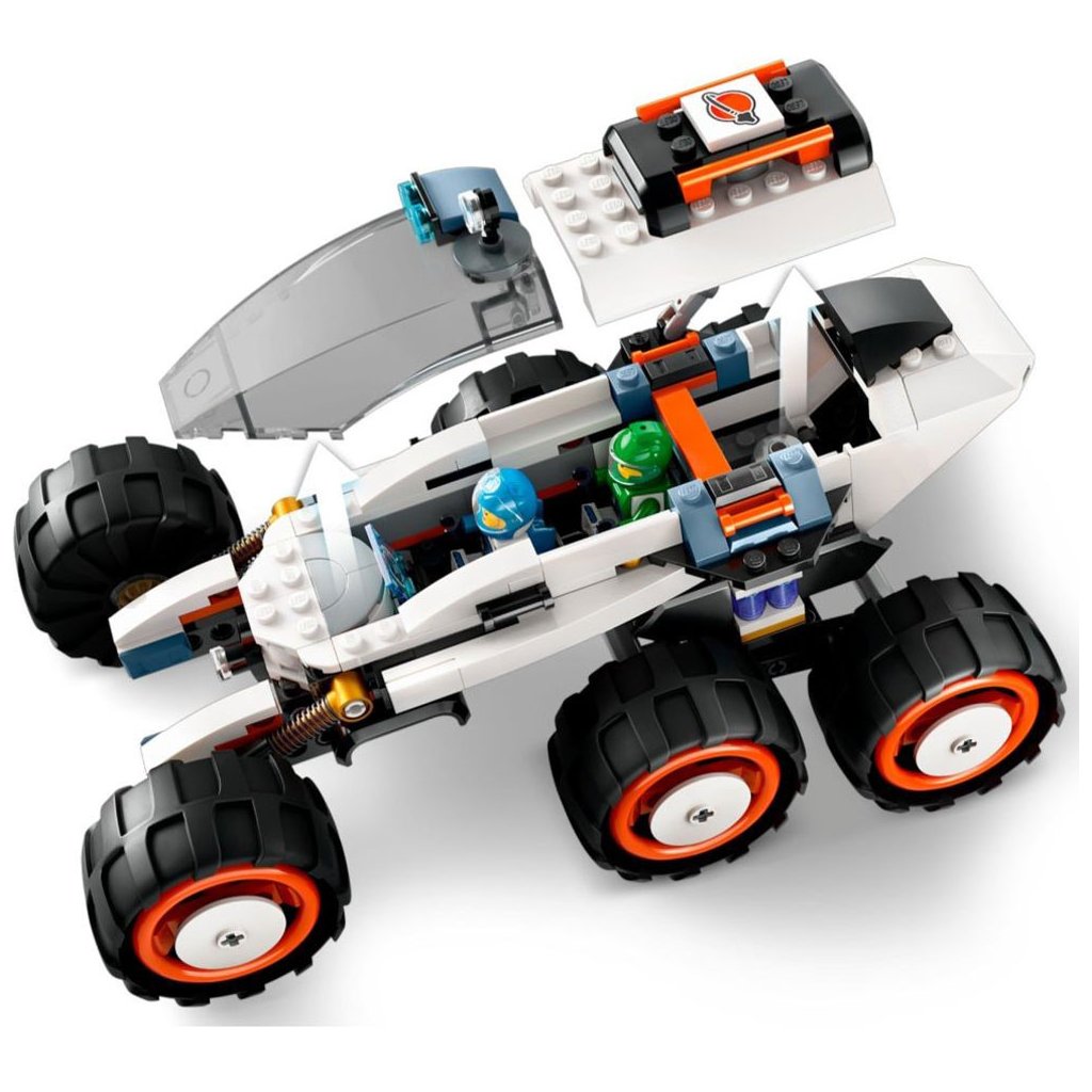 Odolné vozidlo pro průzkum vesmíru je vybaveno 6 velkými pneumatikami a pokročilým odpružením pro jízdu po kamenitém terénu planety. Děti se mohou připojit k posádce, která mapuje povrch planety a objevuje podivné gejzíry tryskající páru a mimozemský život. Součástí této zábavné stavebnice jsou 2 minifigurky vesmírné posádky, robot a figurky mimozemšťanů.