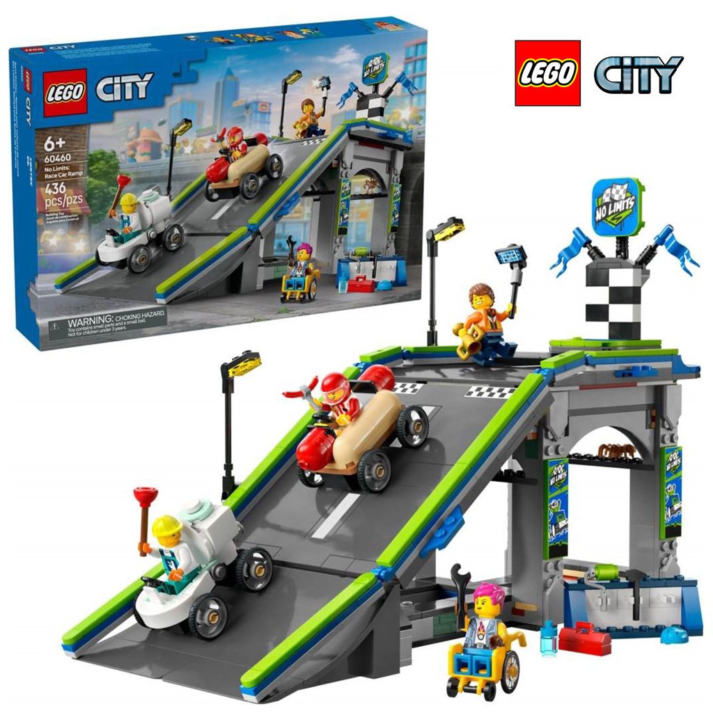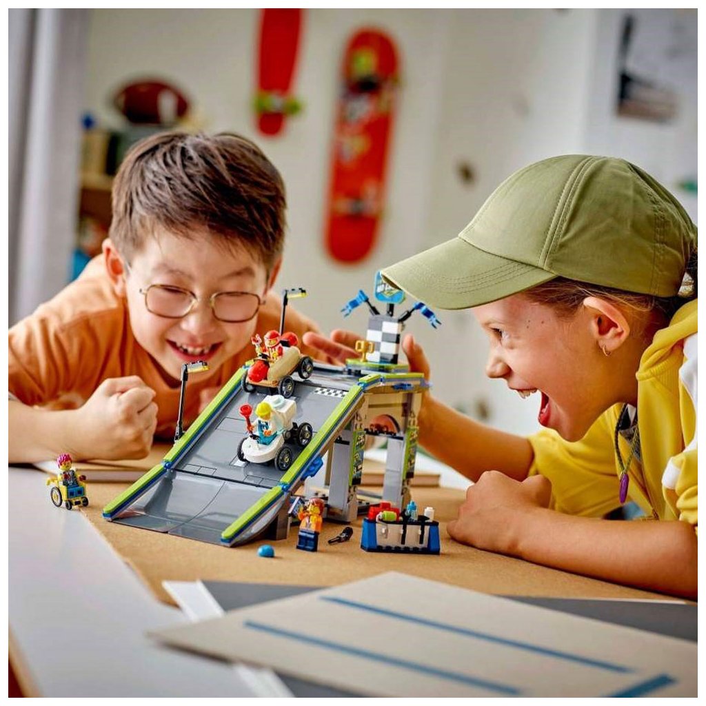 - Závodní minikáry – Malí milovníci závodění od 6 let si užijí spoustu zábavy se stavebnicí LEGO® City Tvoje pravidla: Závodní dráha s rampami