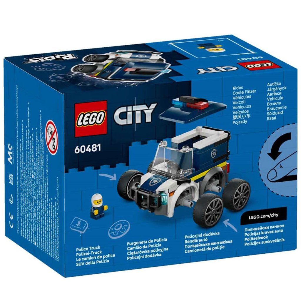Tento sestavitelný policejní vůz má stylové ráfky, nízkoprofilové gumové pneumatiky, nárazník, vězeňské mříže a výstražná světla, a nabízí malým stavitelům zábavný způsob, jak prozkoumat svět LEGO City.
