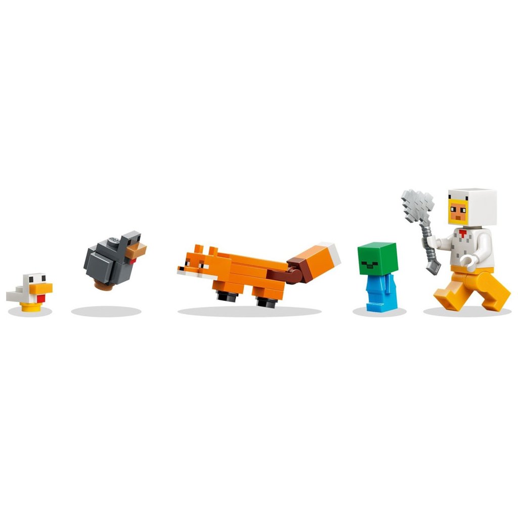 - POSTAVY Z FARMY Z VIDEOHRY MINECRAFT® – Stavebnice LEGO® Minecraft (21585) Slepičí farma obsahuje minifigurku kuřecího fanouška, malé zombie (které rádo jezdí na kuřatech), lišku, studené kuře a kuřátko