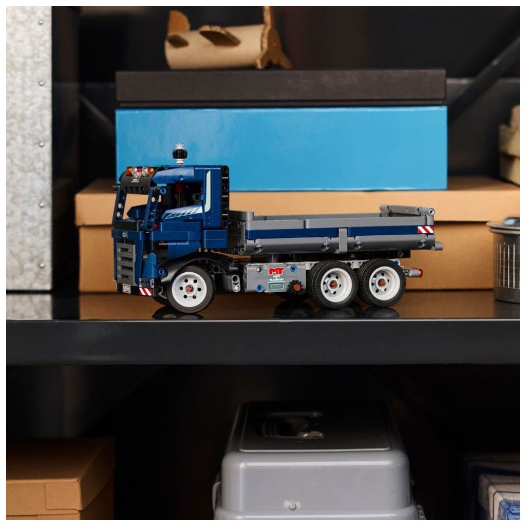 Tato stavebnice modrého stavebního stroje umožňuje dětem od 9 let zahrát si na náročný pracovní den v roli řidiče sklápěče. Zajeďte se sklápěčem na místo a otočením knoflíku na boku náklaďáku sklopte korbu. Otevřete dveře, podívejte se dovnitř kabiny a pak s nákladním vozidlem vyrazte na další misi na staveništi.