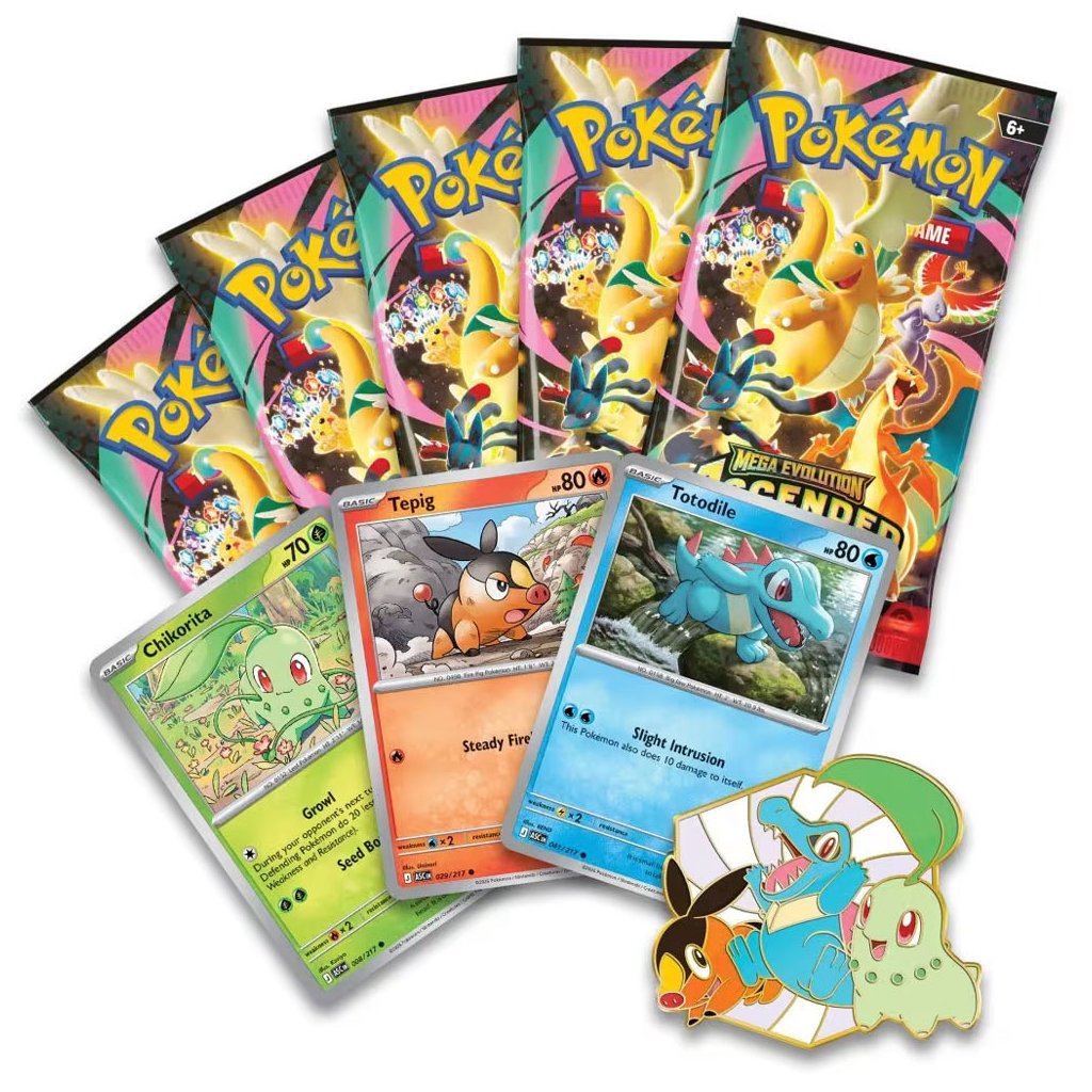 Pokémon Ascended Heroes First partners Deluxe pin collection je speciální dárkové balení pro Pokémon karty. Tento box obsahuje 5 booster balíčků, 3x promo kartu a odznáček.