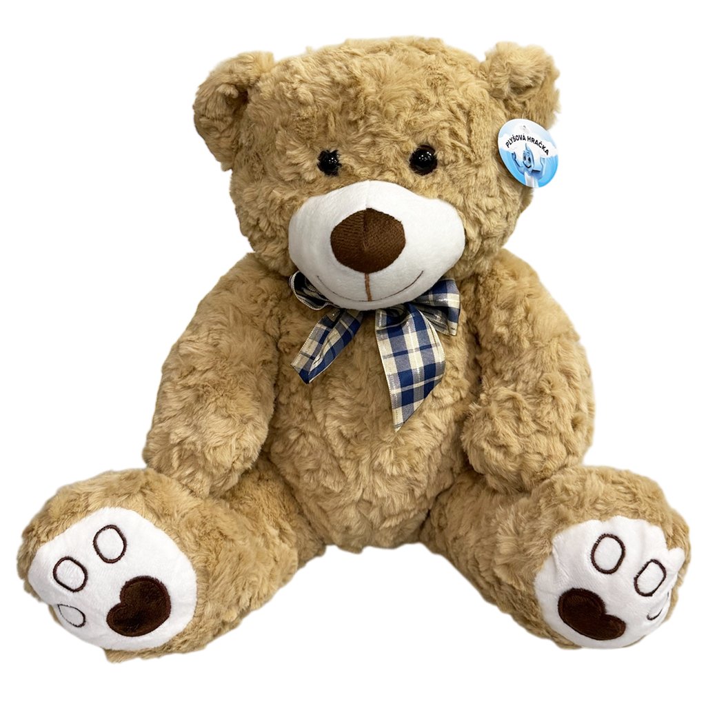 Medvěd plyšový sedící s mašlí 30 cm světle hnědý 2 (3187)