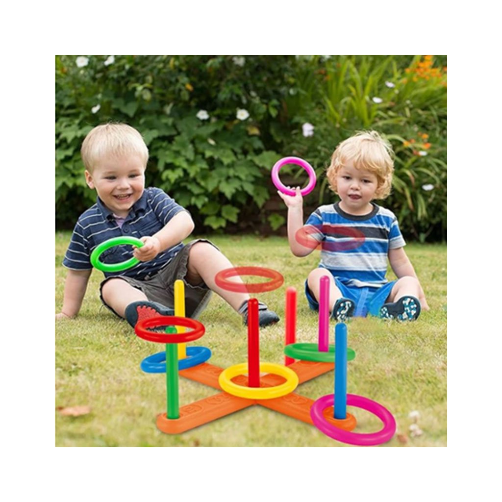 Hra házení kroužků – zábavná hra pro jedno i více hráčů. Sada obsahuje základnu s tyčkami a kroužky. Splňuje nejpřístnější normy EU. Vyrobeno ze zdravotně nezávadného materiálu.