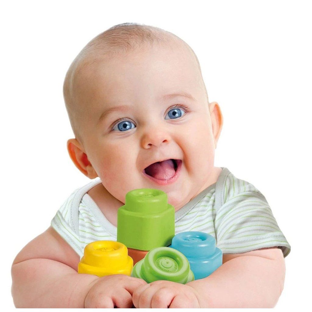 Clemmy baby sada 40 kostek v praktickém uzavíratelném plastovém pytli je vhodná pro děti od 6 měsíců. Měkké, zdravotně nezávadné, různobarevné gumové kostičky lze jednoduše skládat na sebe a dítě si tak rozvíjí jemnou motoriku a představivost. Kostičky jsou bezpečné, díky měkkému plastu, lehce voní a lze je mýt.