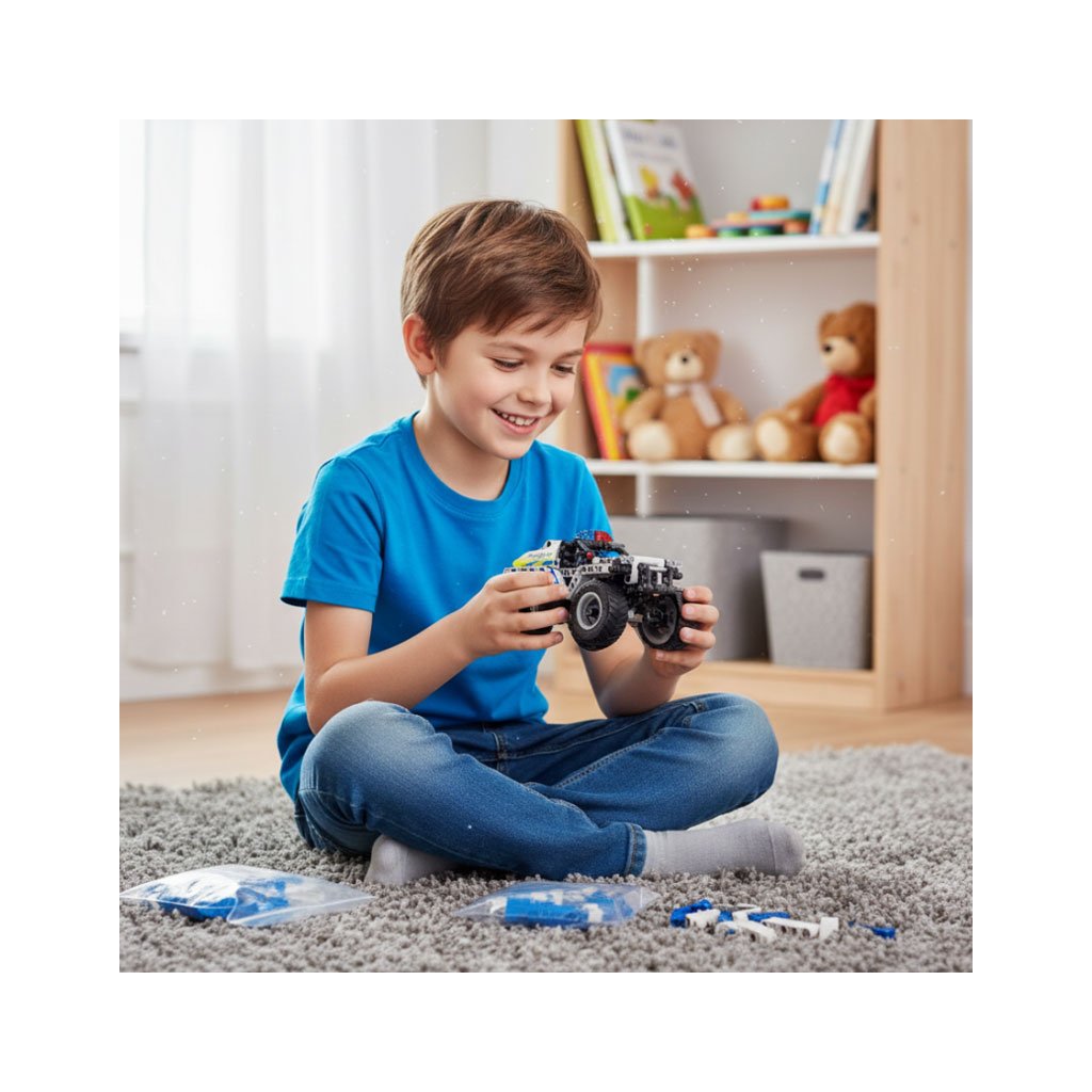 Tato savebnice nabízí zábavu pro děti i dospělé, kteří rádi tráví čas konstruováním a hraním si. Stavebnice obsahuje 199 dílků. Po sestavení je policejní auto natahovací a samo se po natažení rozjede.