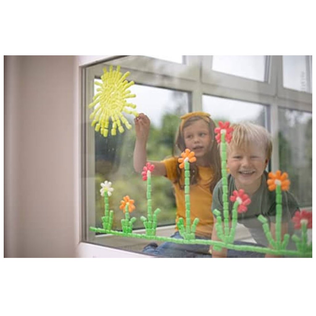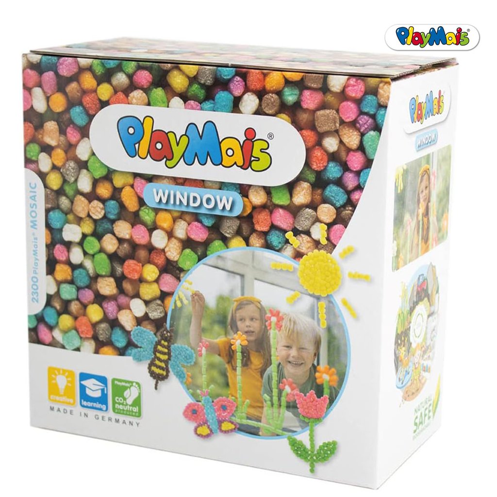 V balení stavebnice Playmais najdeš k sestavení figurky vhodné na okno a předtištěné karty s různými úkoly. Stavebnice obsahuje přibližně 2 300 dílků.